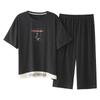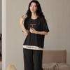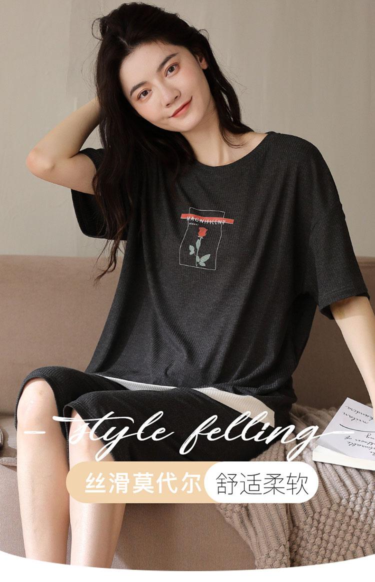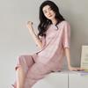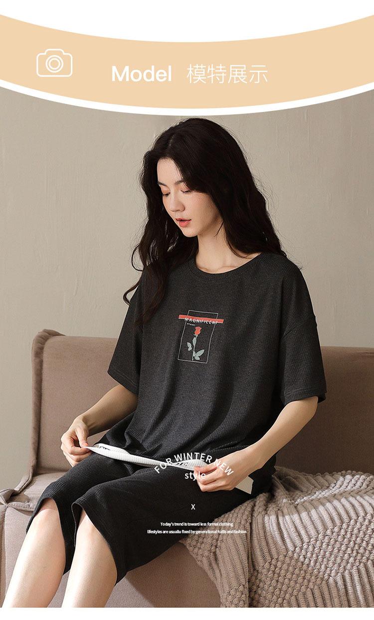 Pijama de Verano para Mujer Modal Manga Corta Pantalón Recortado Conjunto de Dos Piezas Cuello Redondo Ropa Casual Simple Ropa para el Hogar Verano
