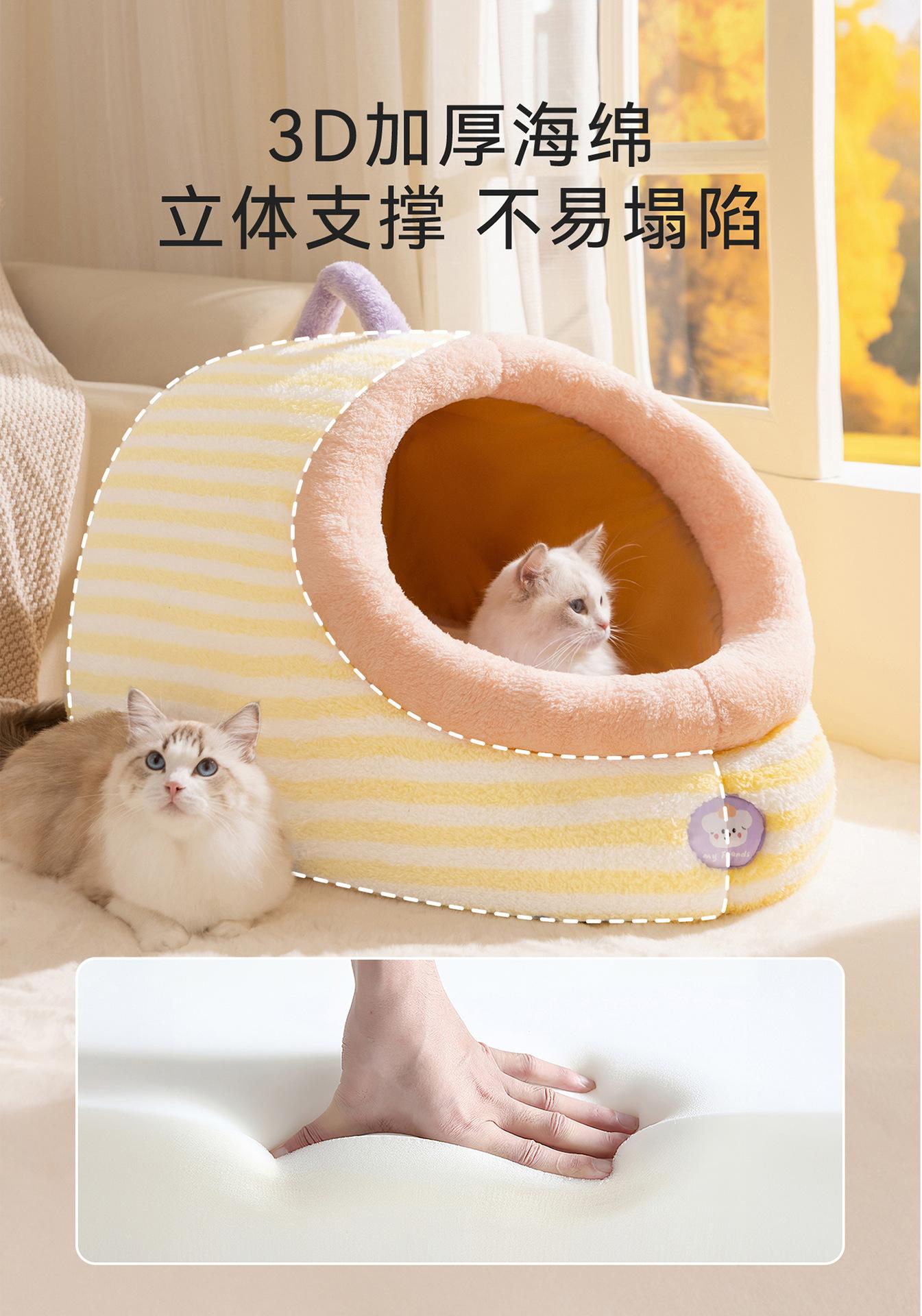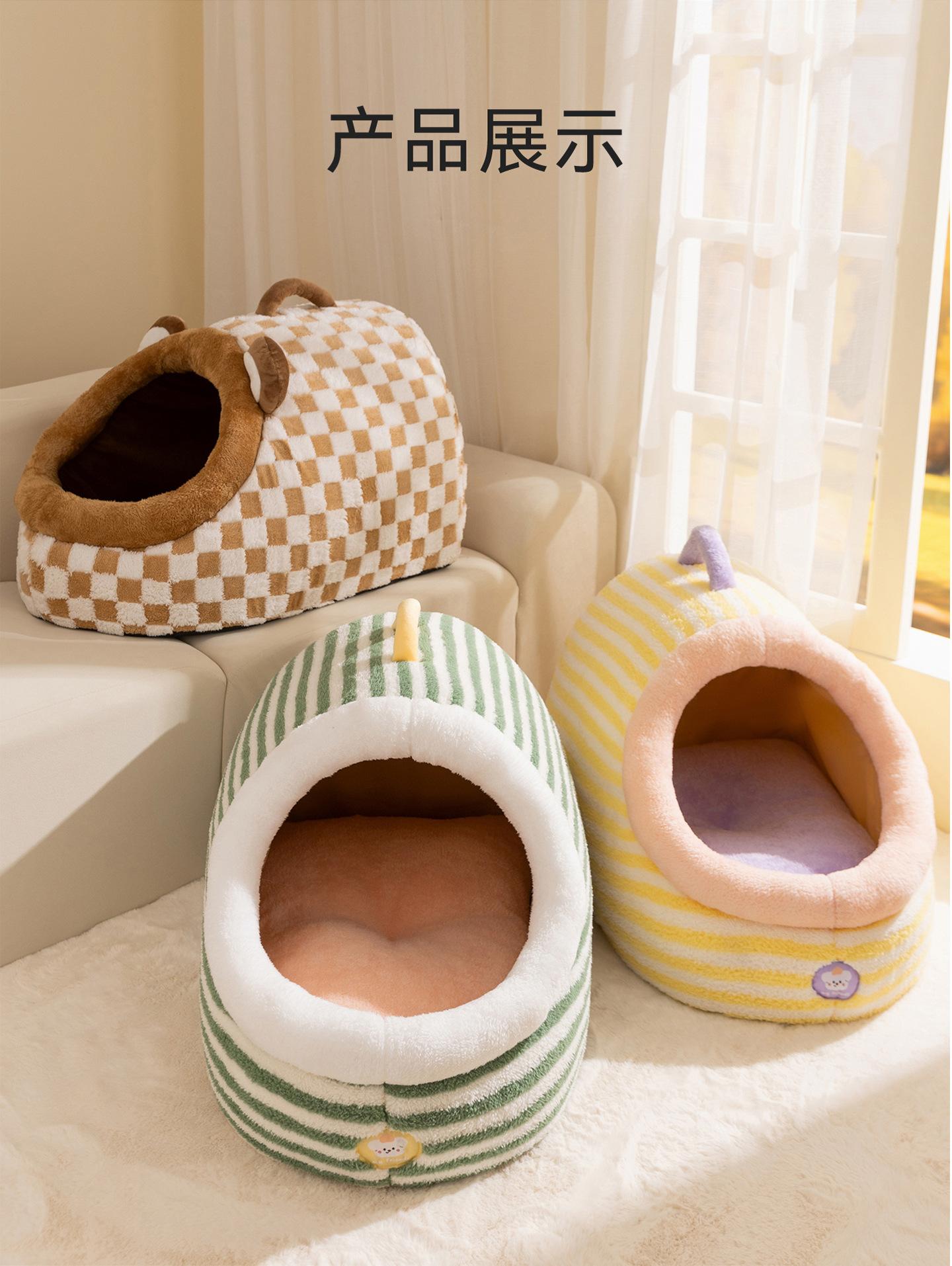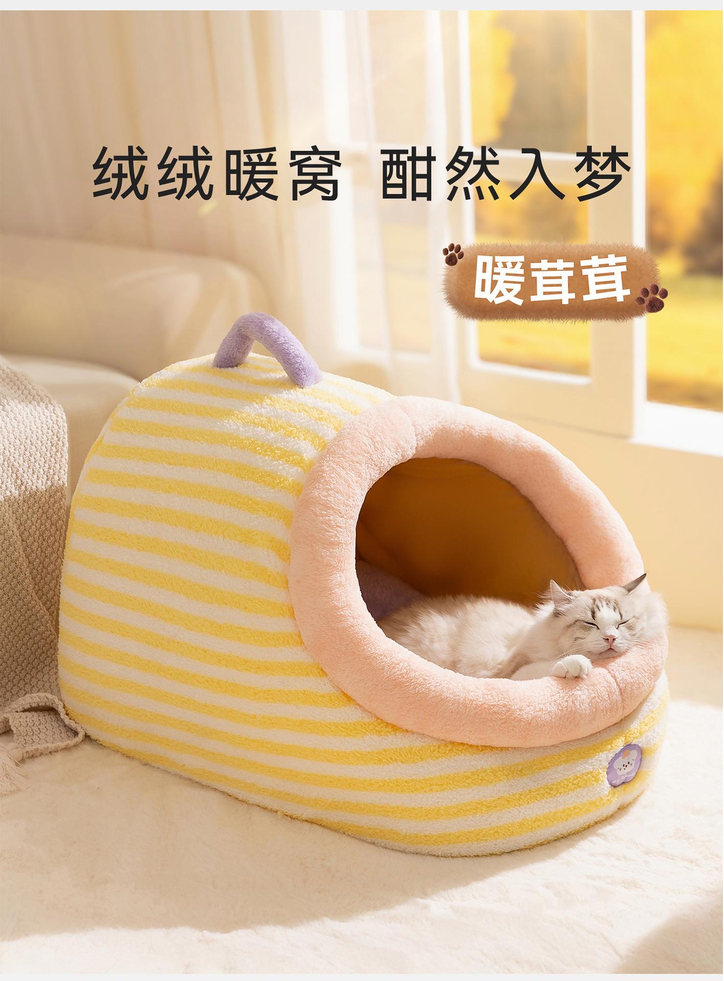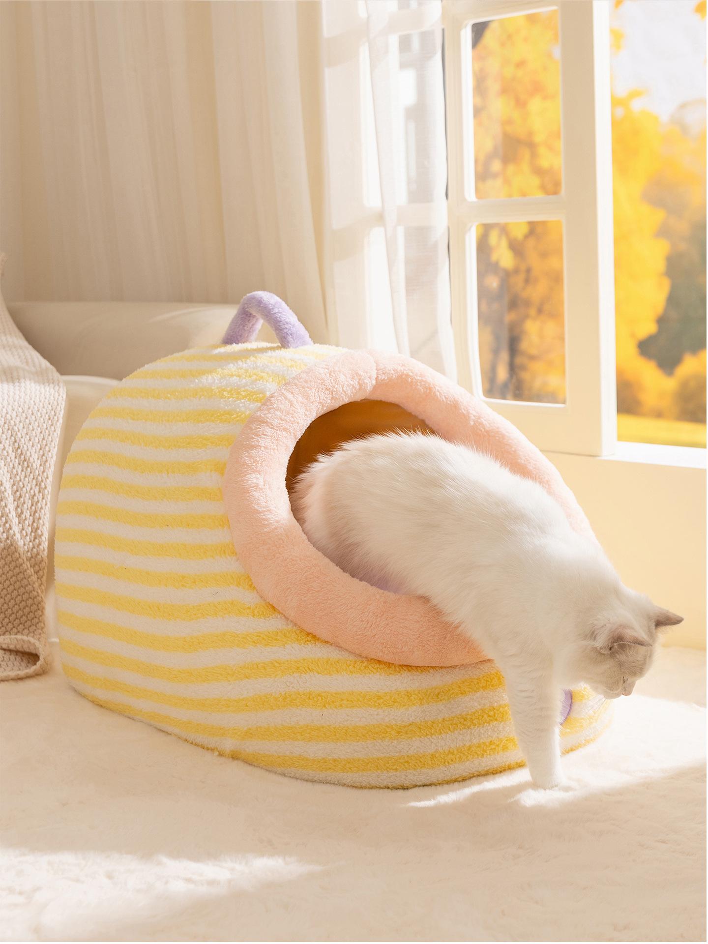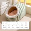Cama para Perro Linda Semicerrada Portátil Cama para Gato Engrosada Cálida Cama para Perro Casa Nido en Forma de Arco Nido Clásico de Rayas para Mascotas