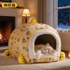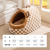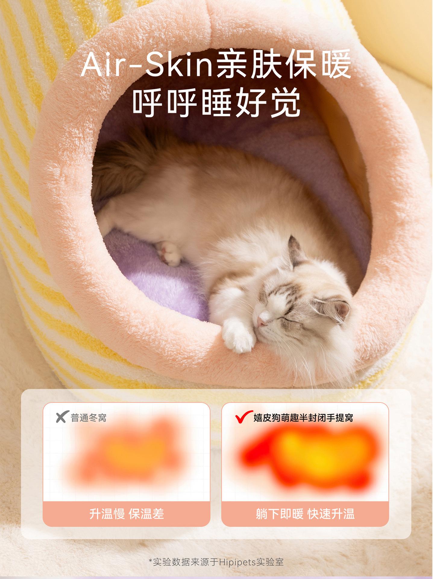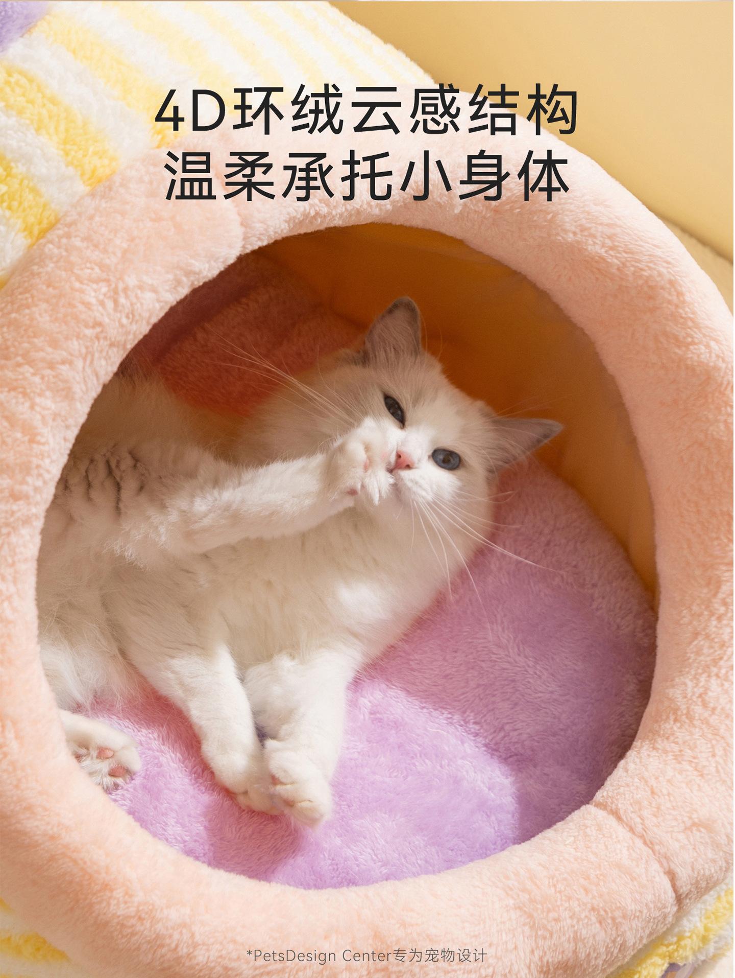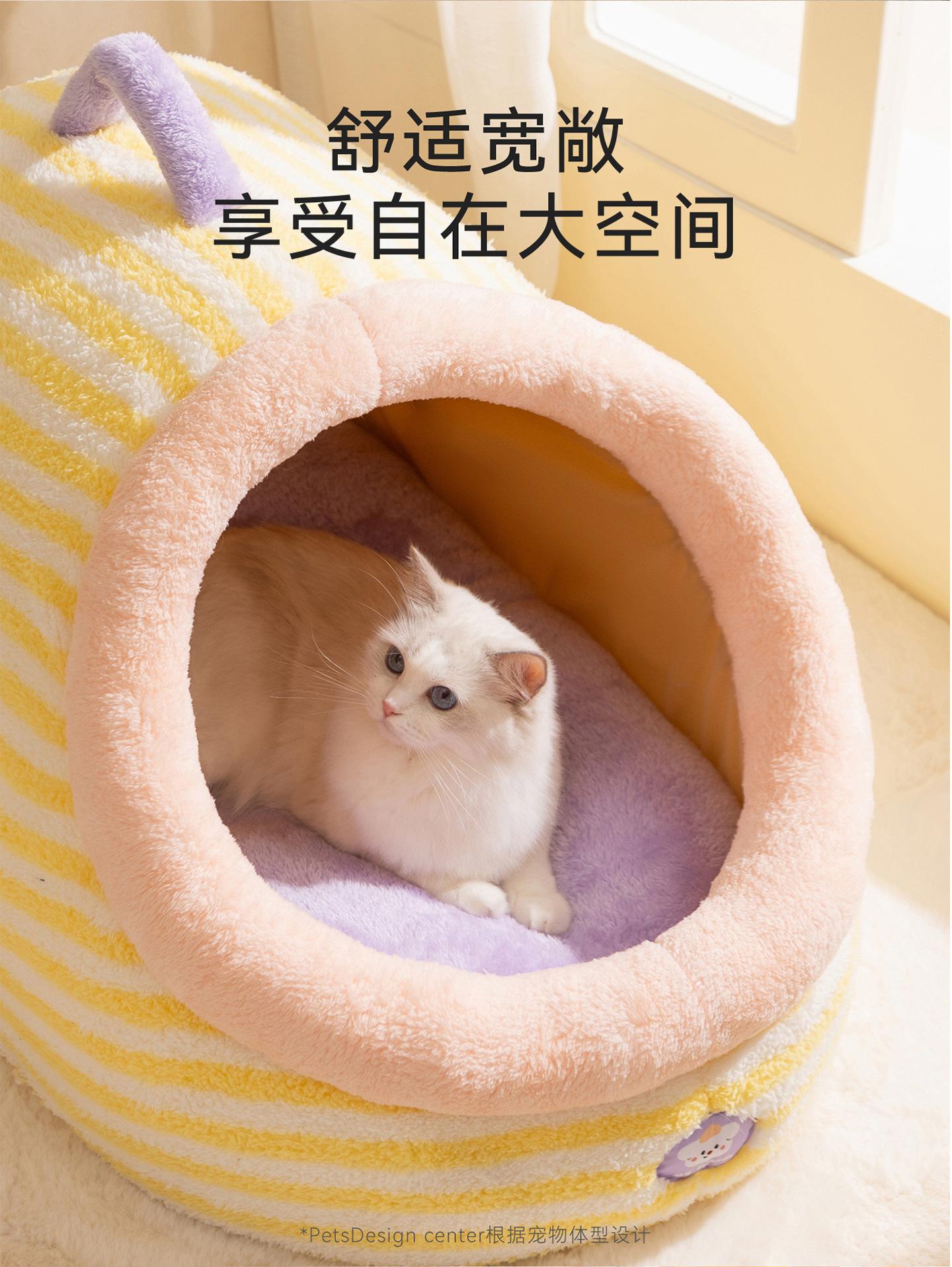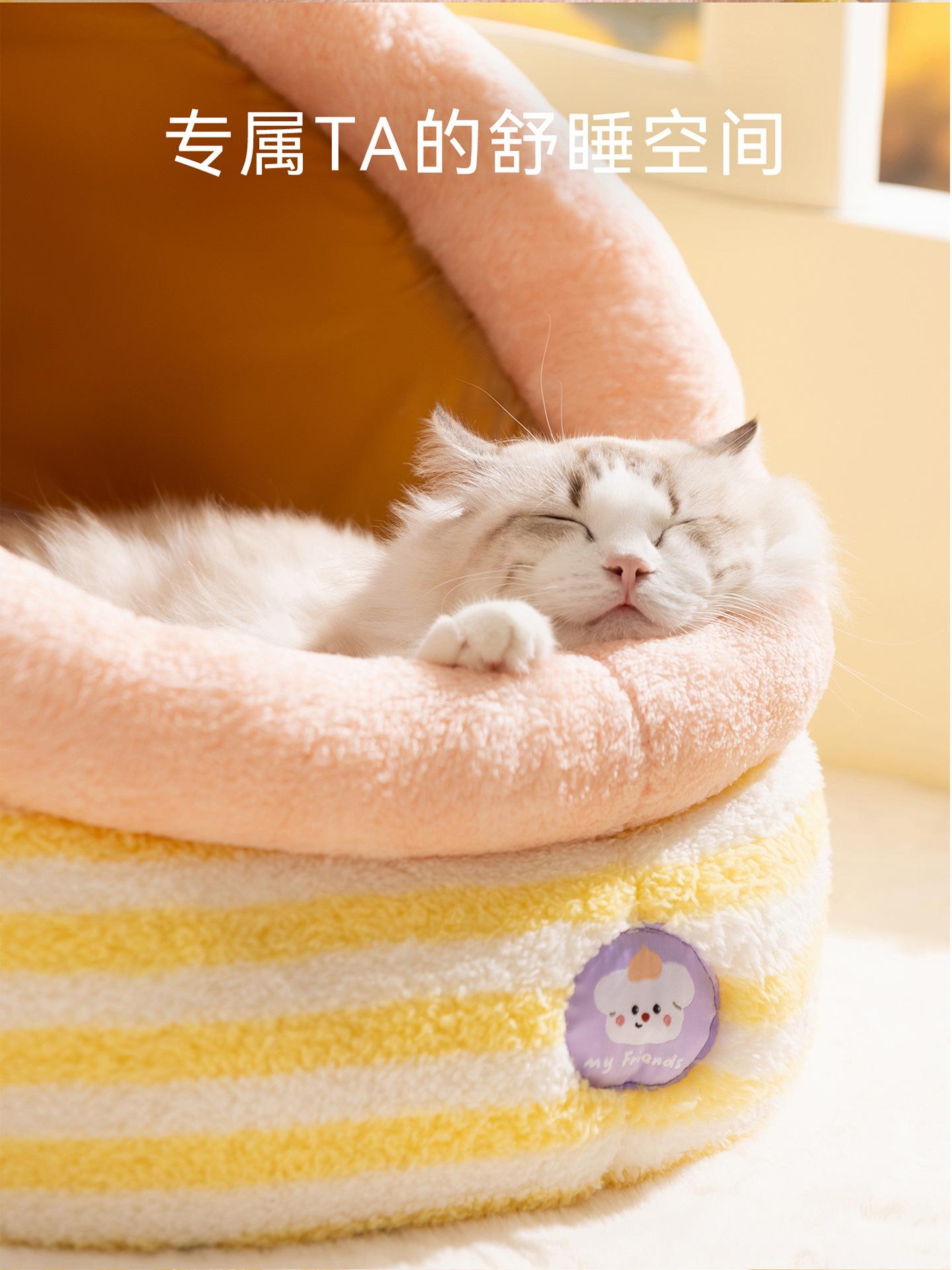 Cama para Perro Linda Semicerrada Portátil Cama para Gato Engrosada Cálida Cama para Perro Casa Nido en Forma de Arco Nido Clásico de Rayas para Mascotas