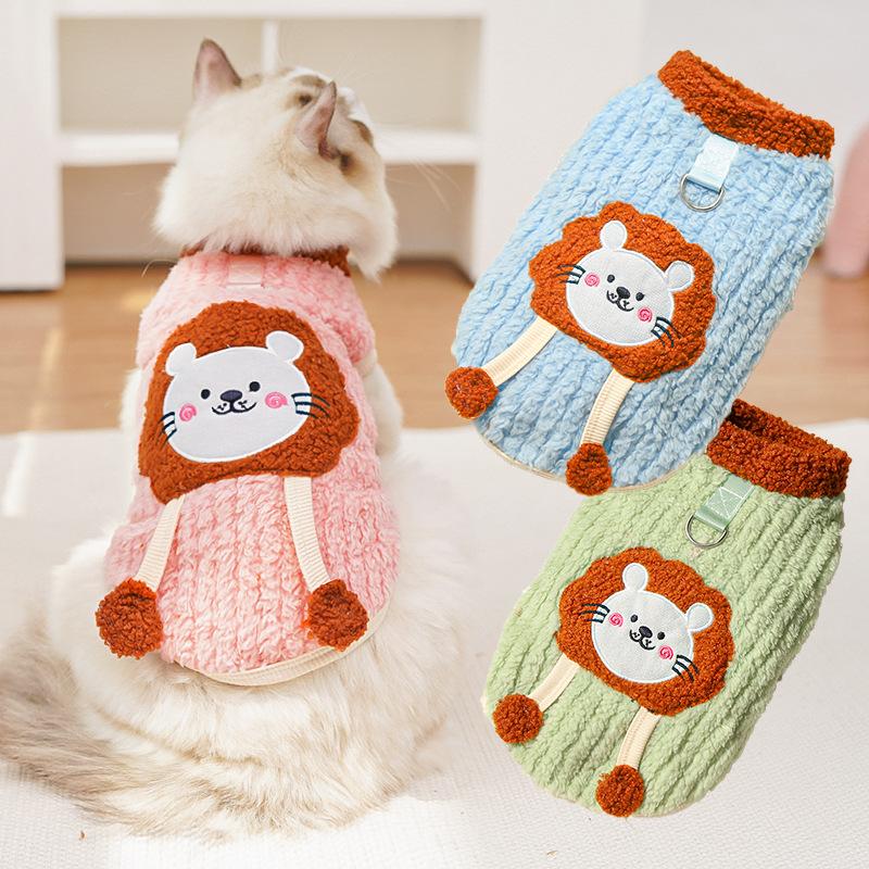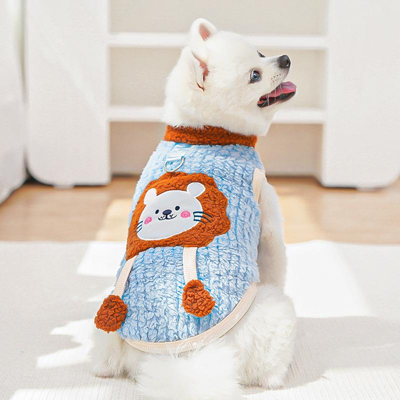 Ropa para Mascotas Otoño e Invierno Chaleco para Perro Gato Teddy Bichón Pomerania Tipo Cachorro Ropa Suministros Forrado de Felpa Bolsillo de León