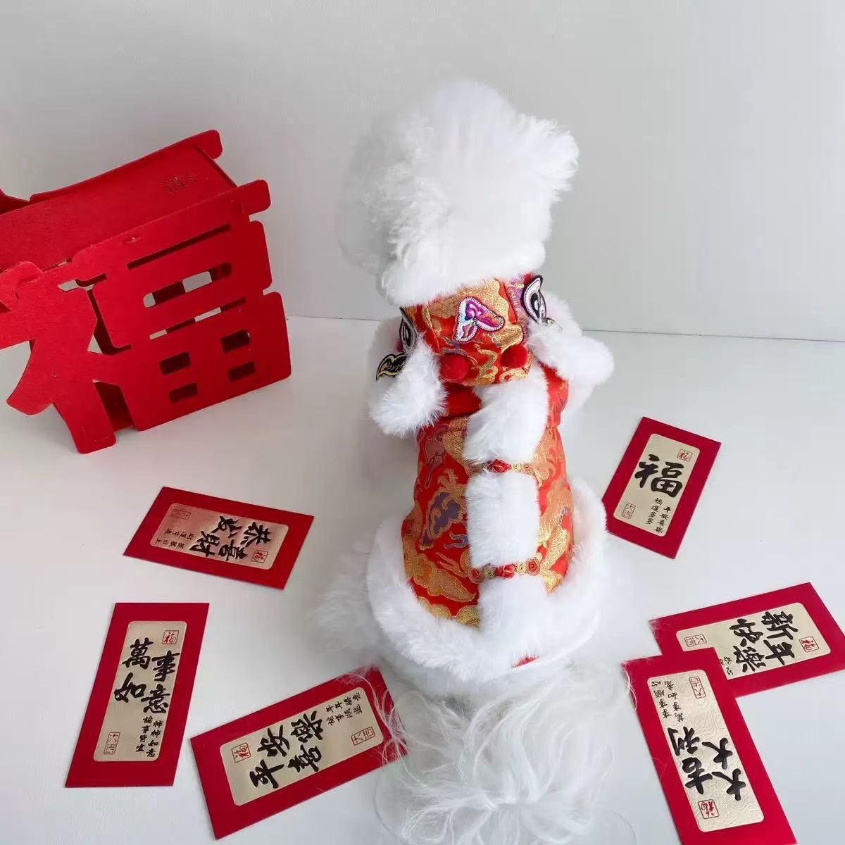 Ropa para Perro Invierno Forro Polar Cálida Ropa para Mascota Festiva Danza del León Teddy Pomerania Corgi Perros Pequeños y Medianos