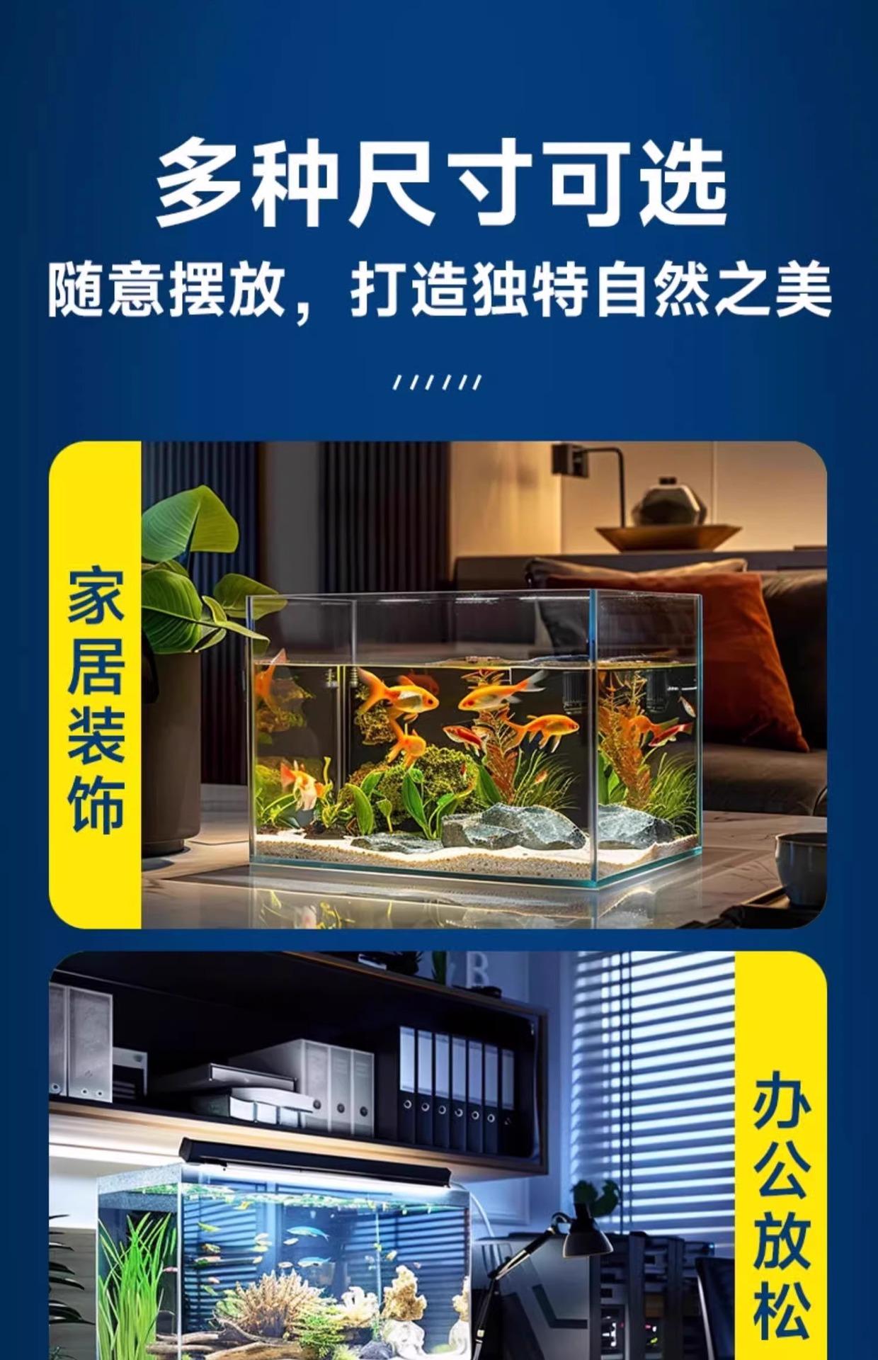 Acuario de Vidrio Súper Blanco Acuático Loco Paisajismo Sala de Estar Pequeña Escritorio Pecera para Betta Peces Dorados Tortuga Arroyo Tanque Ecológico
