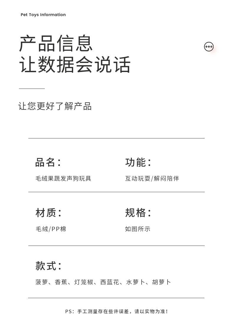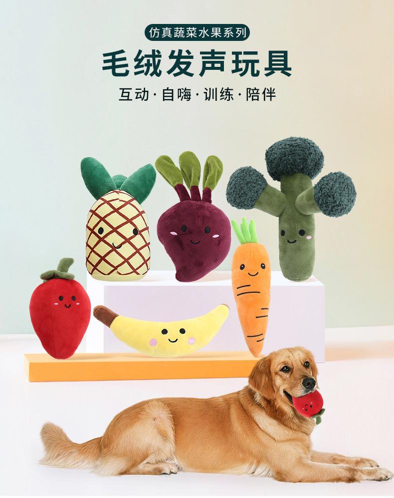 Nuevos Suministros para Mascotas Juguetes Peluches Sonoros Serie Verduras Frutas Juguetes para Perros Resistentes a la Dentición Resistentes a las Mordidas