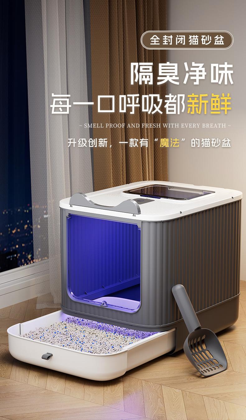 Caja de arena para gatos a prueba de olores completamente cerrada extragrande