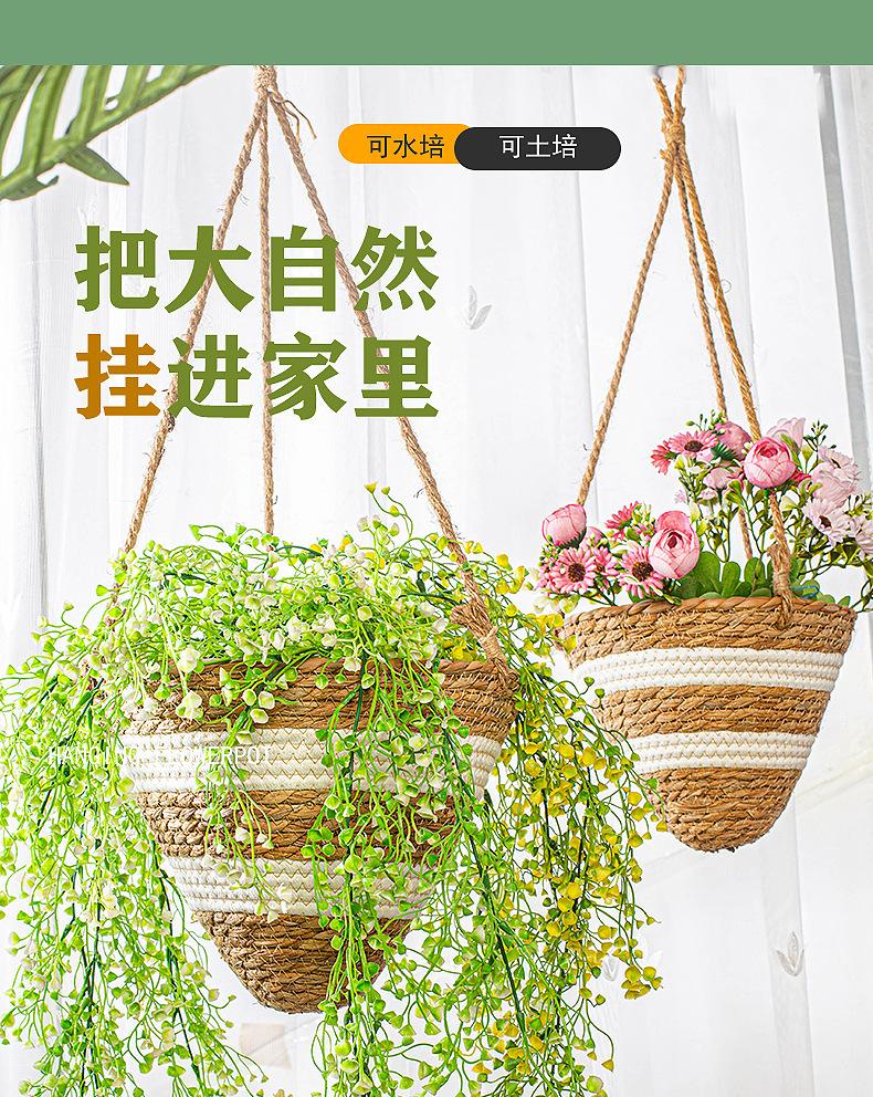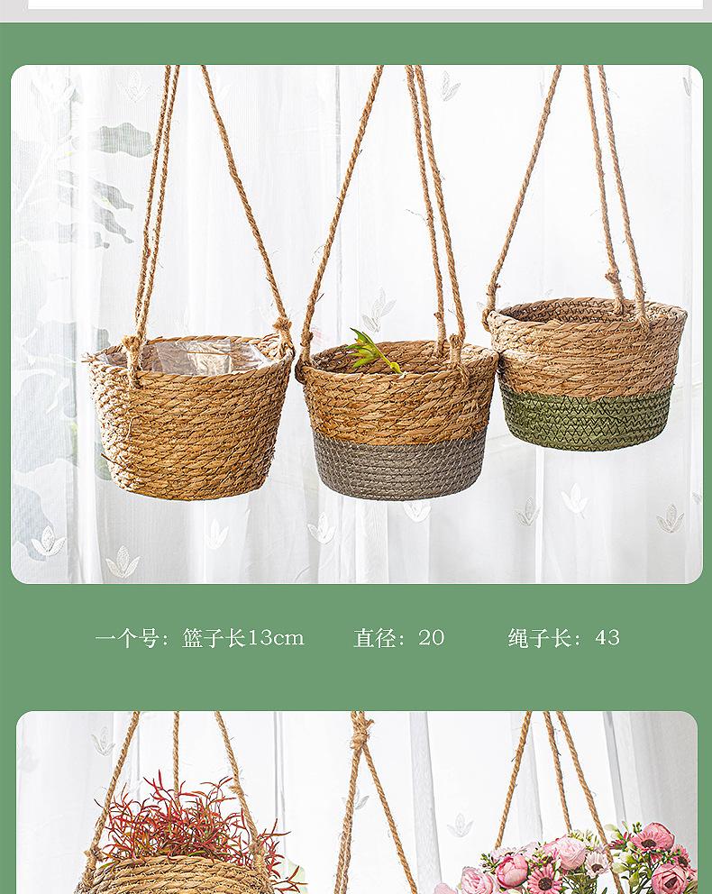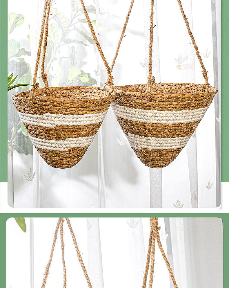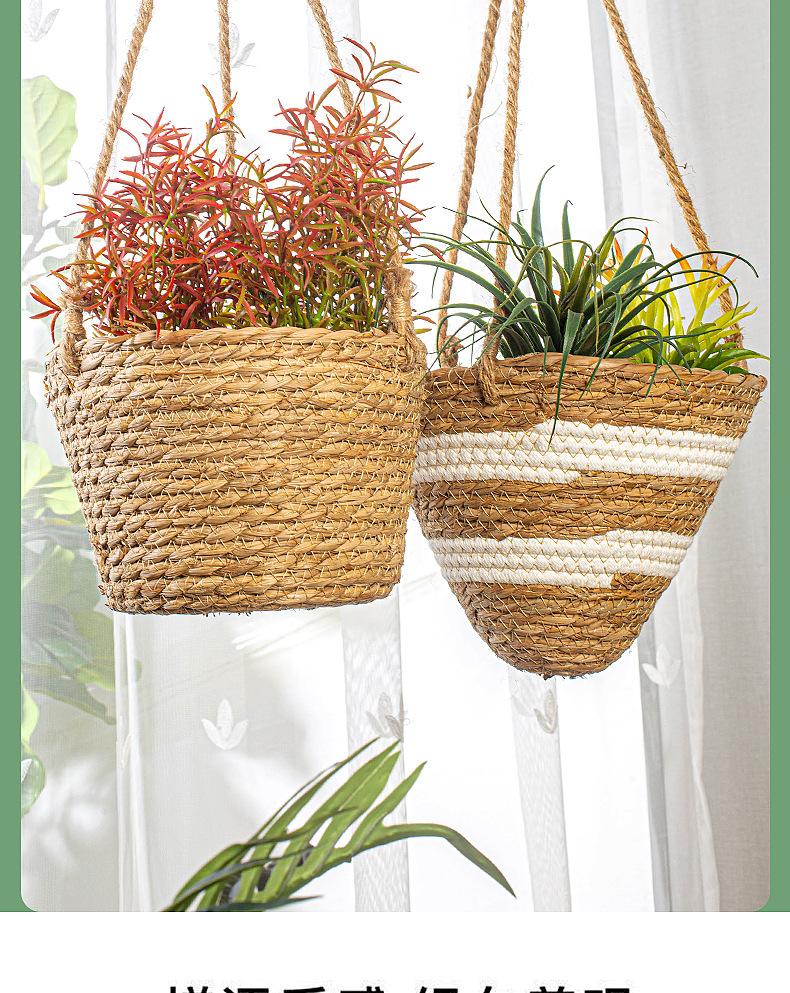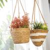 Maceta colgante de paja tejida decorativa de ratán hecha a mano para plantas colgantes, cesta colgante de paja, maceta colgante para el hogar, planta en maceta simulada, cesta de flores tejida decorativa al por mayor