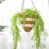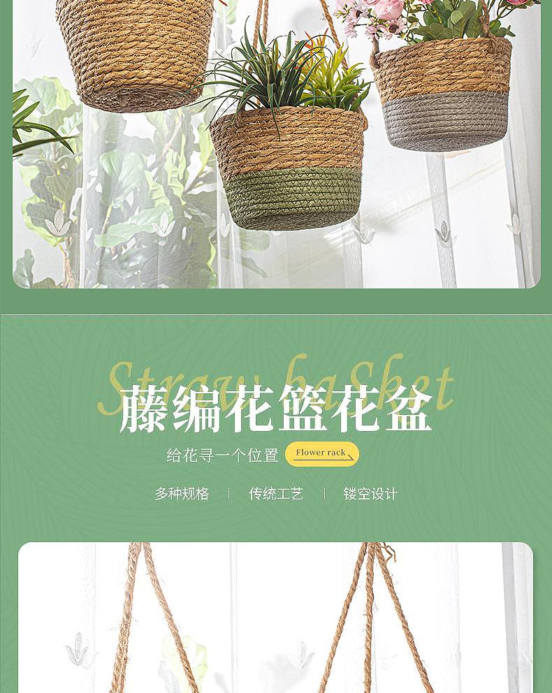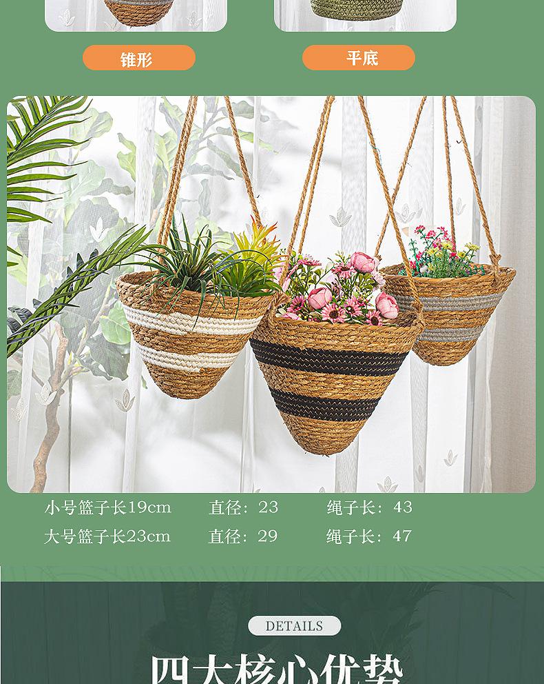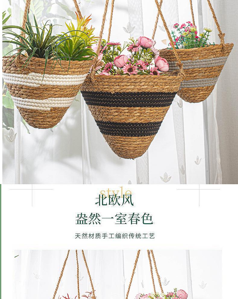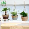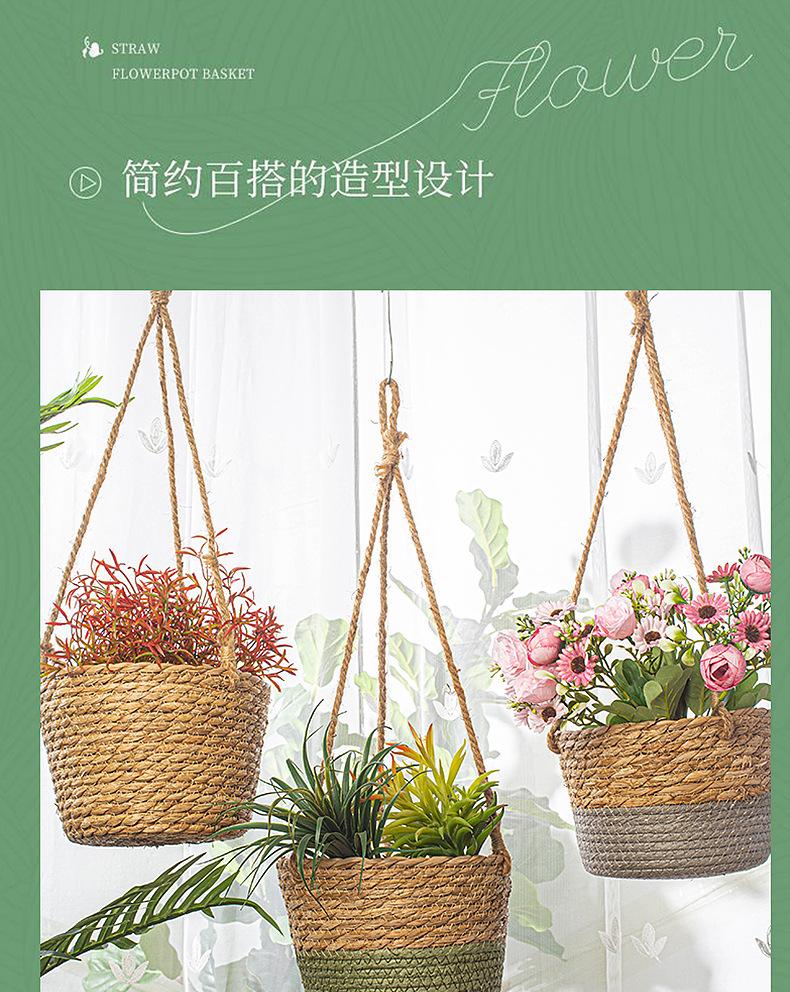 Maceta colgante de paja tejida decorativa de ratán hecha a mano para plantas colgantes, cesta colgante de paja, maceta colgante para el hogar, planta en maceta simulada, cesta de flores tejida decorativa al por mayor