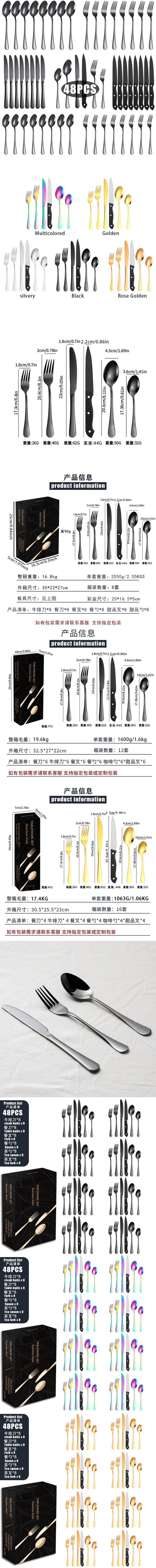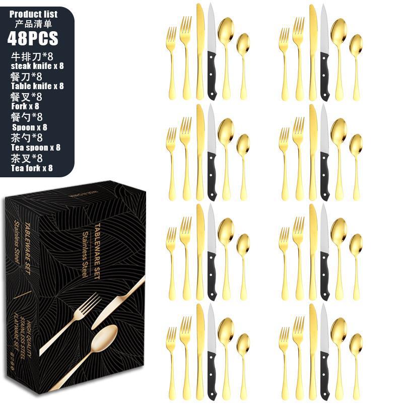 Juego de Vajilla Juego de Vajilla de Acero Inoxidable para 8 Personas Juego de Cuchillo, Tenedor y Cuchara Juego de 48 Piezas Caja de Color Cuchillo para Carne
