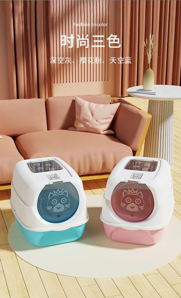 Litter box-Large fully enclosed type-Pink-PP-Free gift-Litter scoop+Deodorant bag-1 piece (Naked packaging)