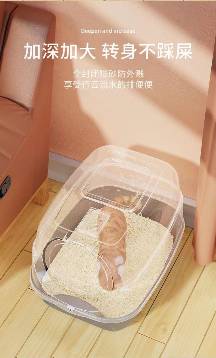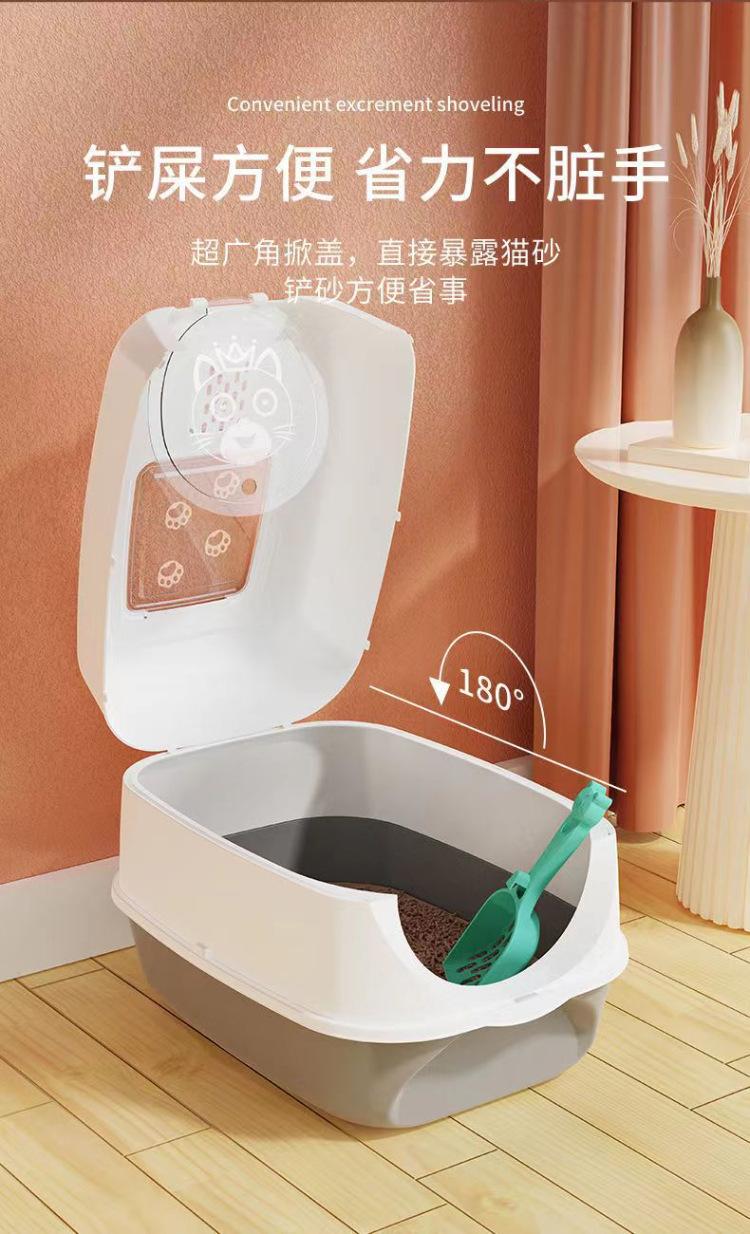 Cat Litter Box-Large Fully Enclosed Type-Gray-PP-Free Gift-Litter Scoop+Deodorizing Bag-1 Piece (Naked Packaging)