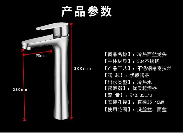 Grifo de lavabo de acero inoxidable 304 directo de fábrica para agua fría y caliente, grifo de lavabo pequeño de cintura de hombre, grifo de lavabo