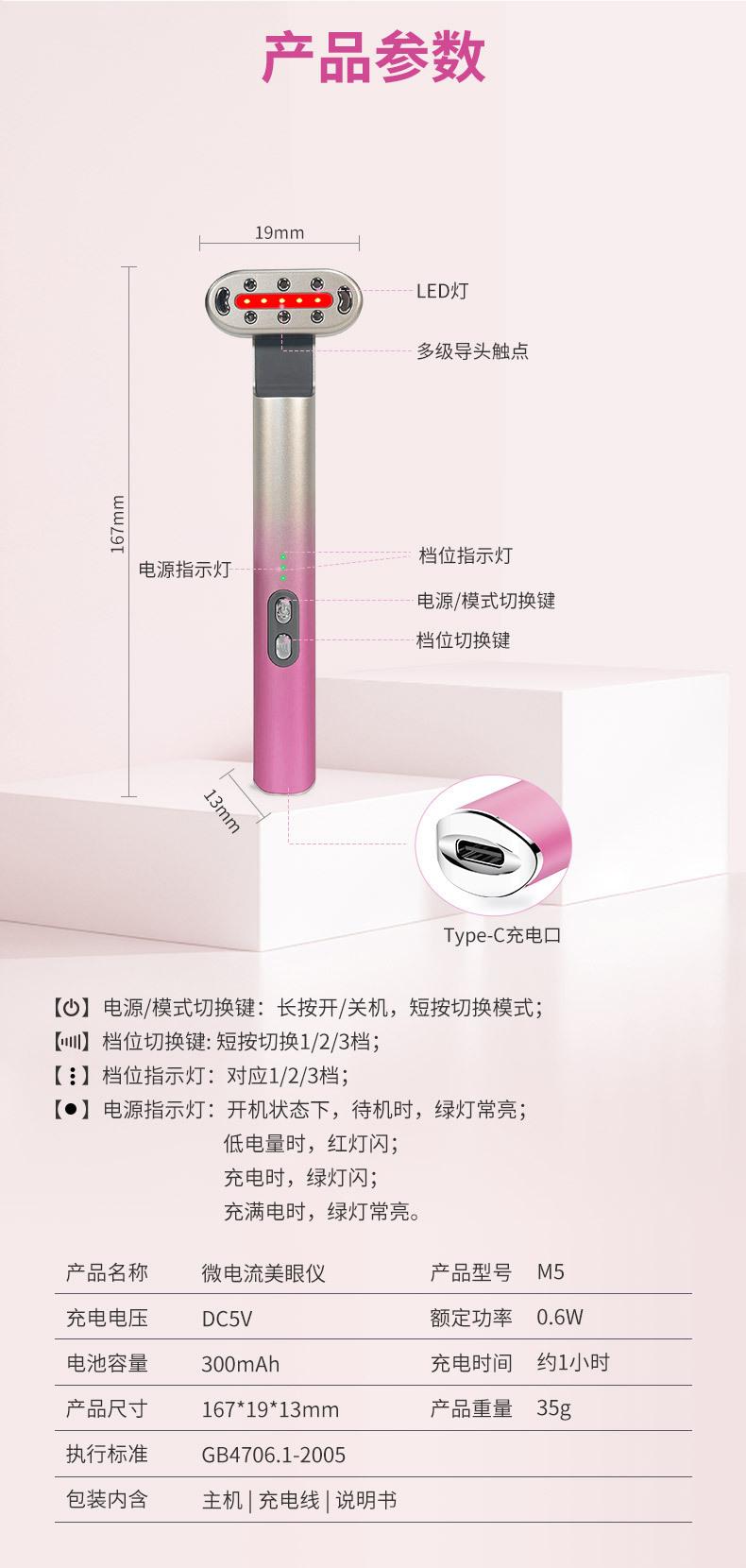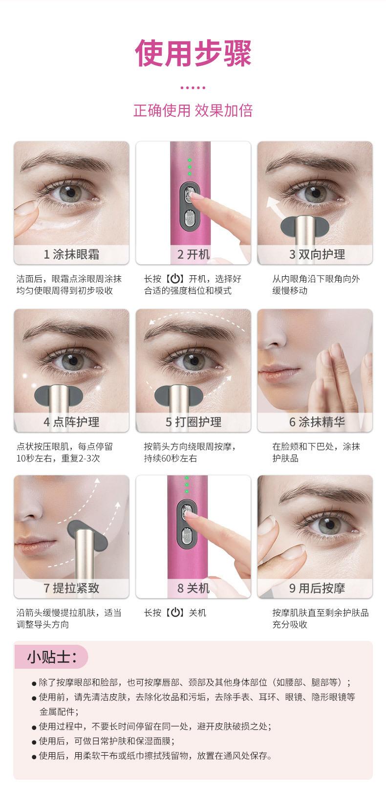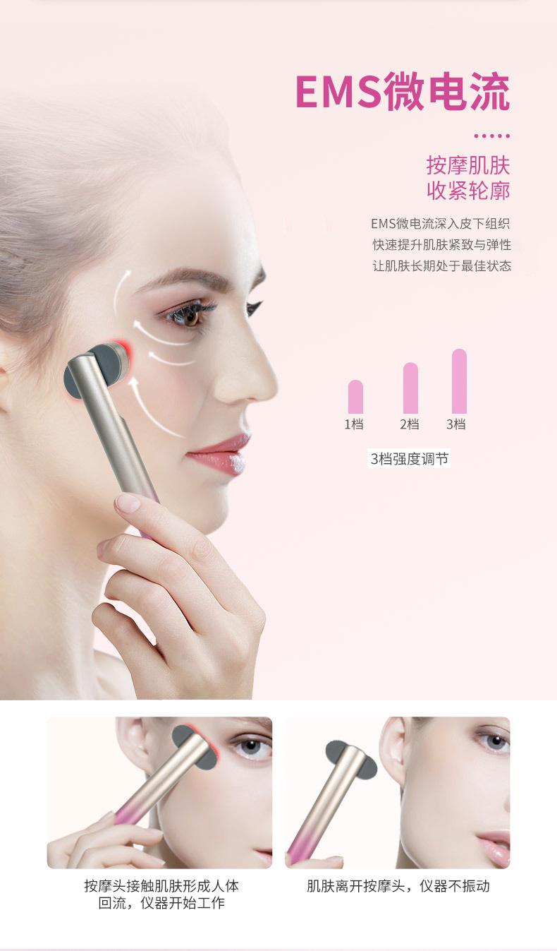 Nuevo Instrumento de Belleza Ocular Transfronterizo Microcorriente Calentamiento Masaje Vibratorio Luz Roja Verde Naranja Portátil Introducción de Esencia para Ojos