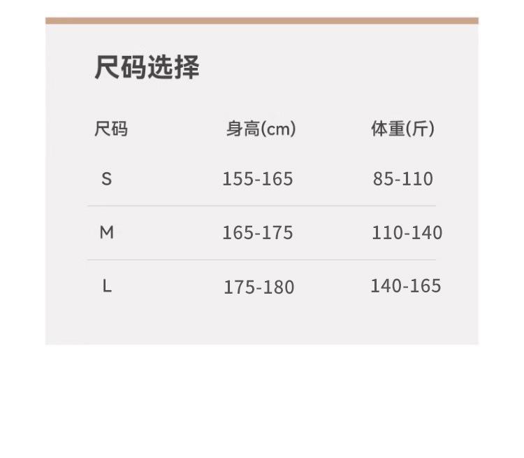 S (42.5-55kg ), M (55-70kg ), L (70-82.5kg )