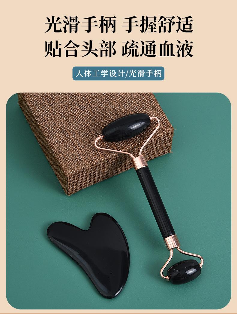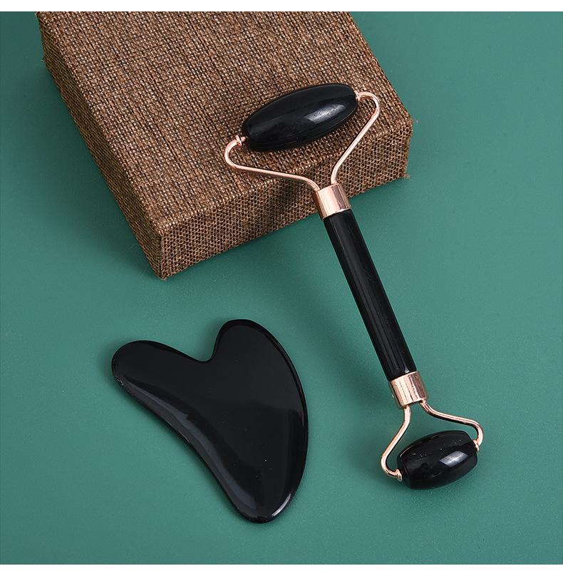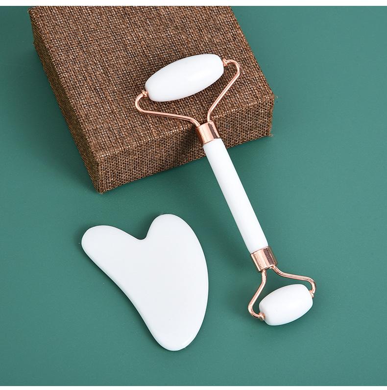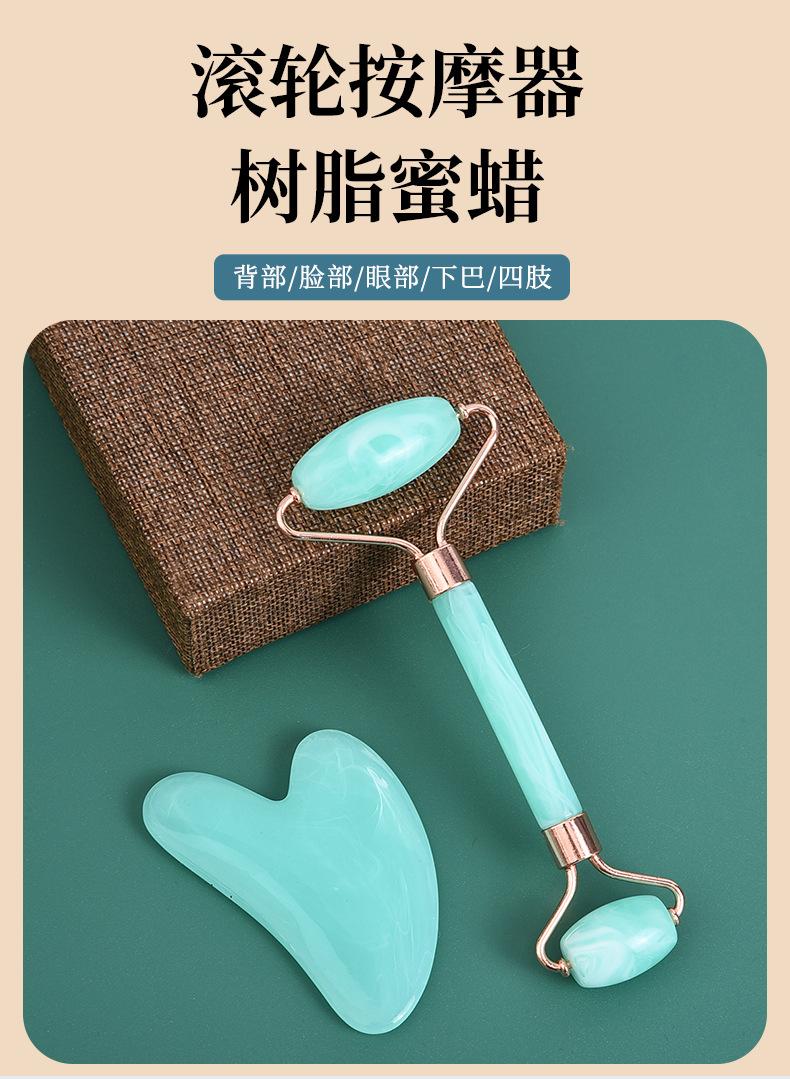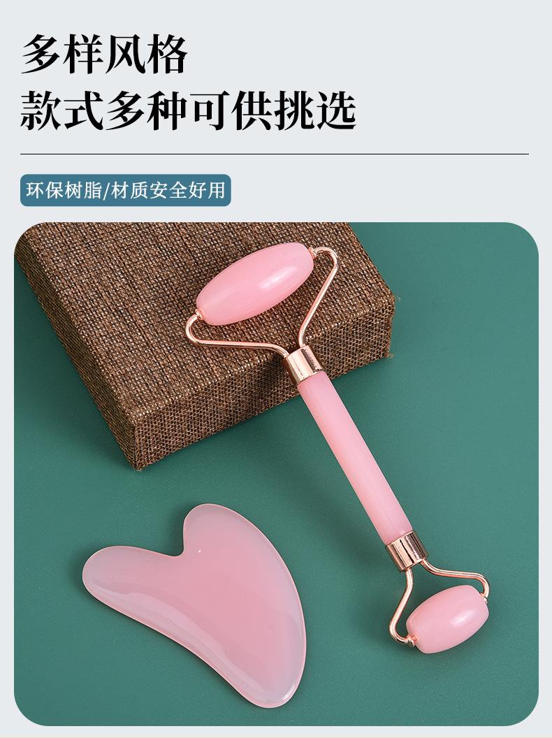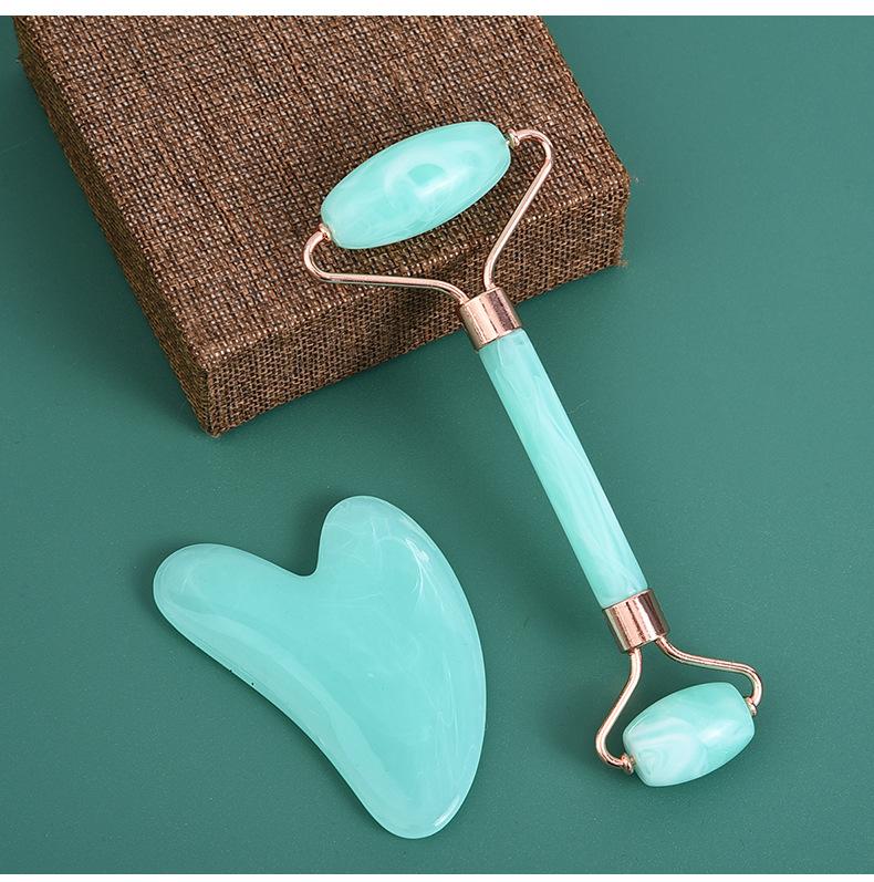 Masajeador Facial con Rodillo, Rodillo Lifting y Reafirmante Facial, Masajeador Facial, Tabla de Raspado Facial, Rodillo de Jade Imitación