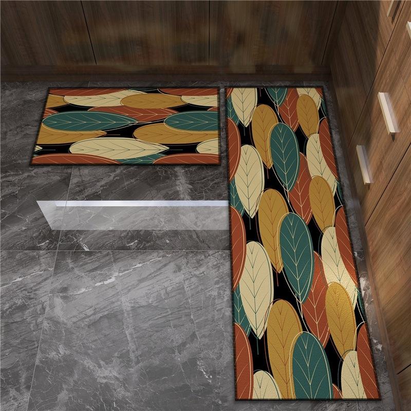 Generación transfronteriza cabello impresión de hoja fresca tapete de cocina tapete antideslizante alfombra tapete absorbente tapete para entrada de baño