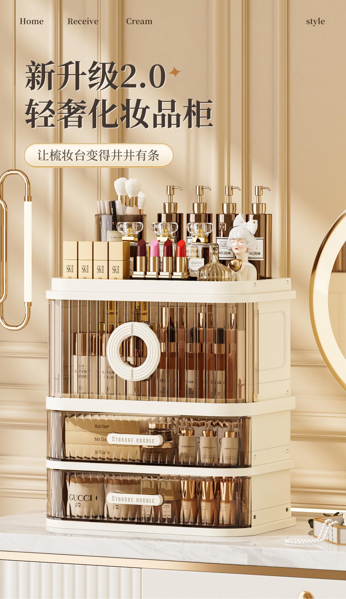 Suministro Especial Transfronterizo Caja de Almacenamiento de Cosméticos Plegable de Doble Puerta Gabinete de Almacenamiento de Productos para el Cuidado de la Piel de Escritorio a Prueba de Polvo Tipo Cajón Lápiz Labial