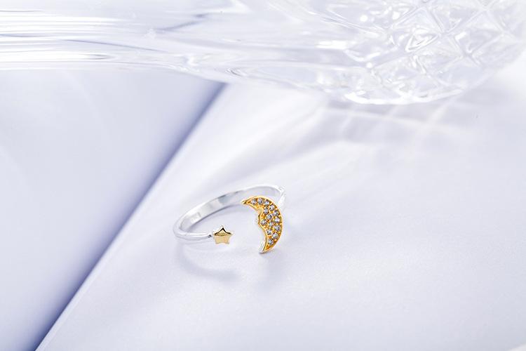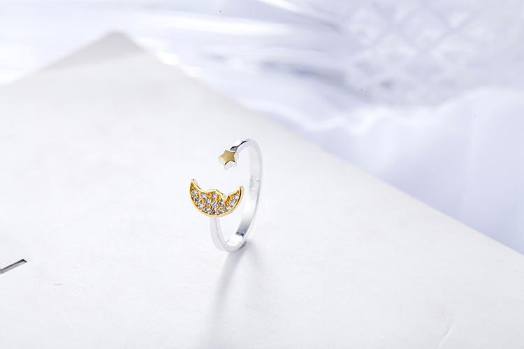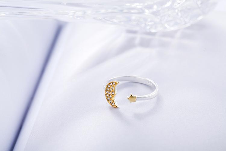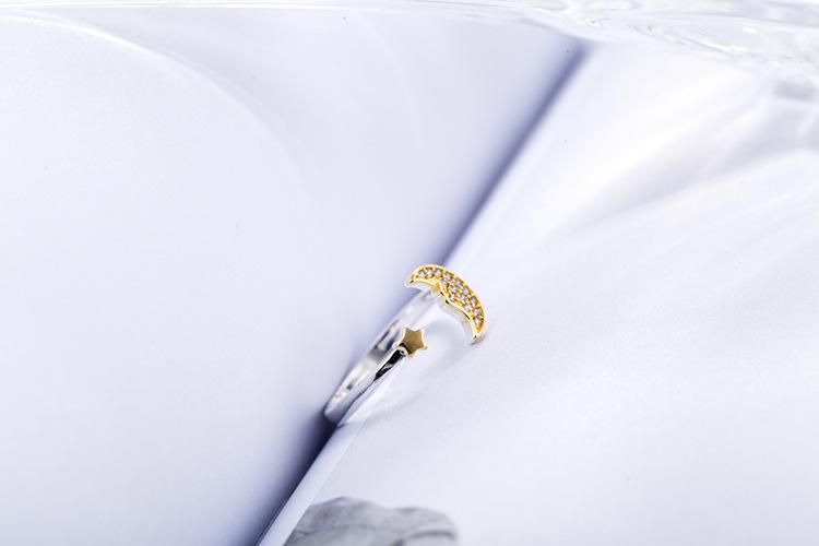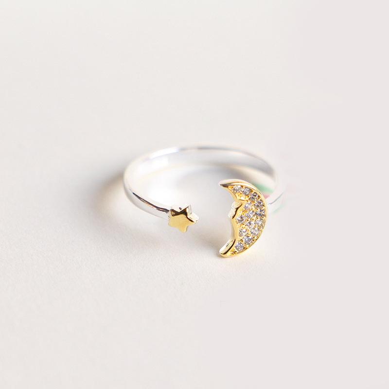 Anillo japonés y coreano de estrella luna para estudiante INS personalidad hipster atmósfera estrella brillante luna anillo de dedo índice suministro de comercio electrónico