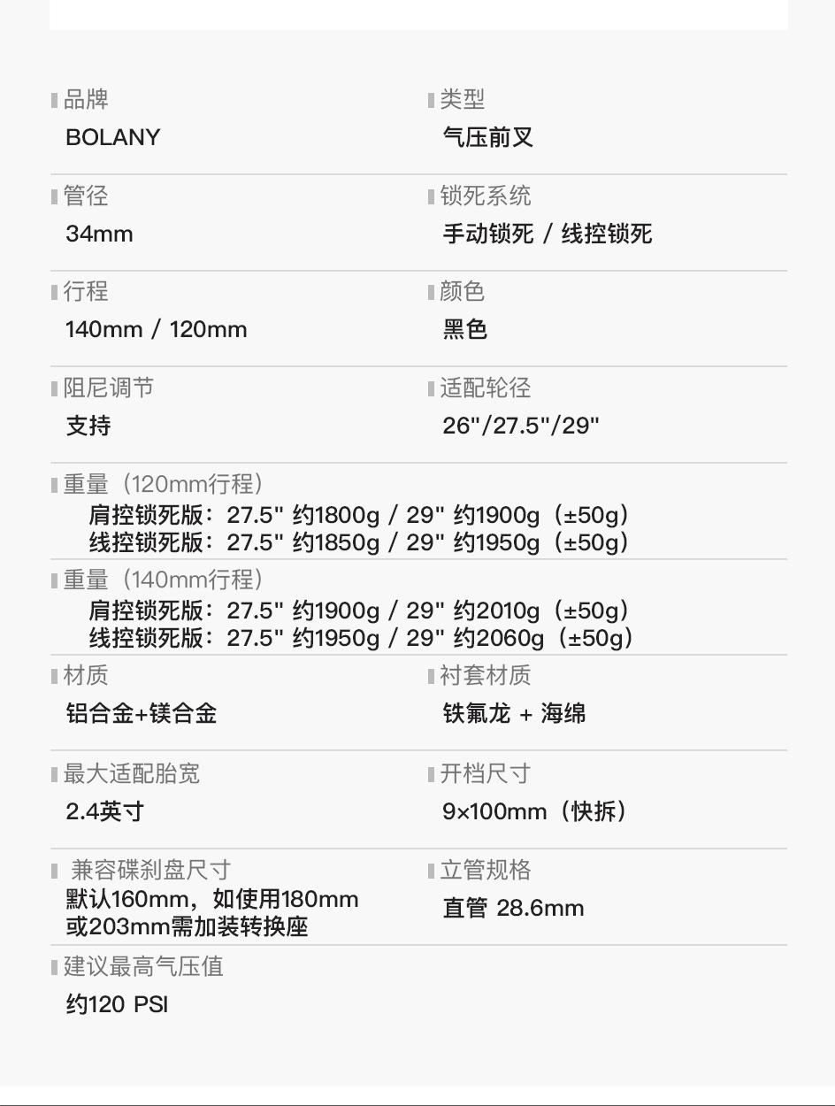 Peso (recorrido de 120 mm): Versión muerta de pin de control de hombro: 27.5” aprox. 1800g/29" aprox. 1900g (±50g)