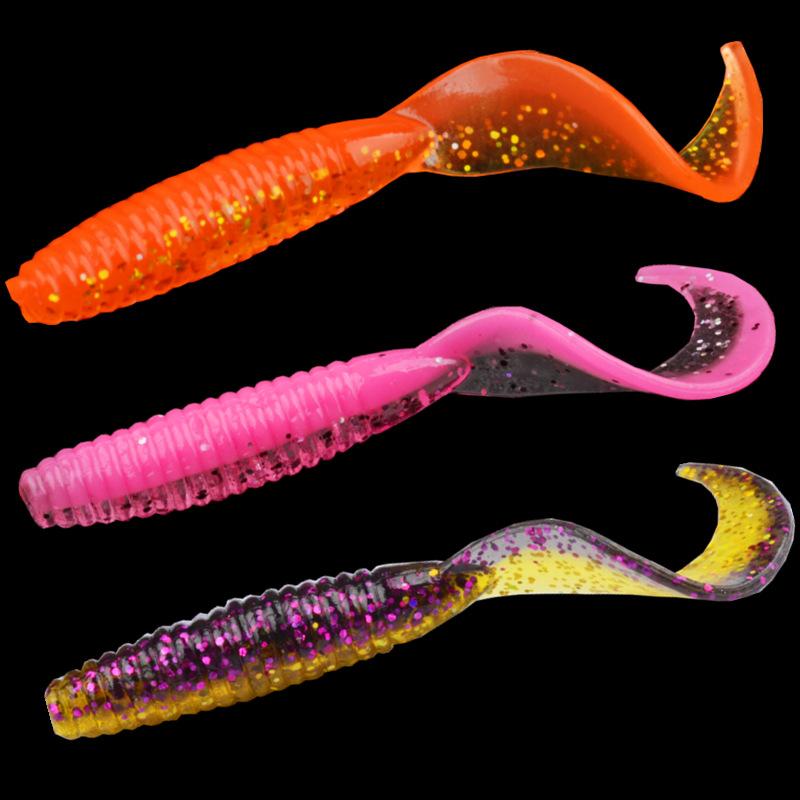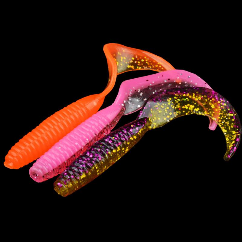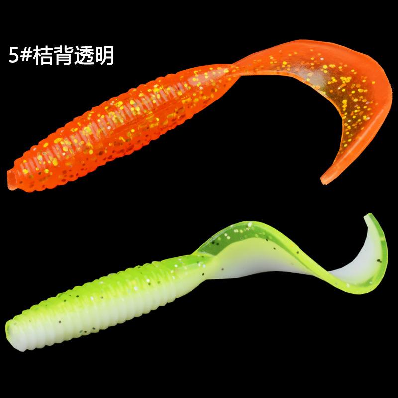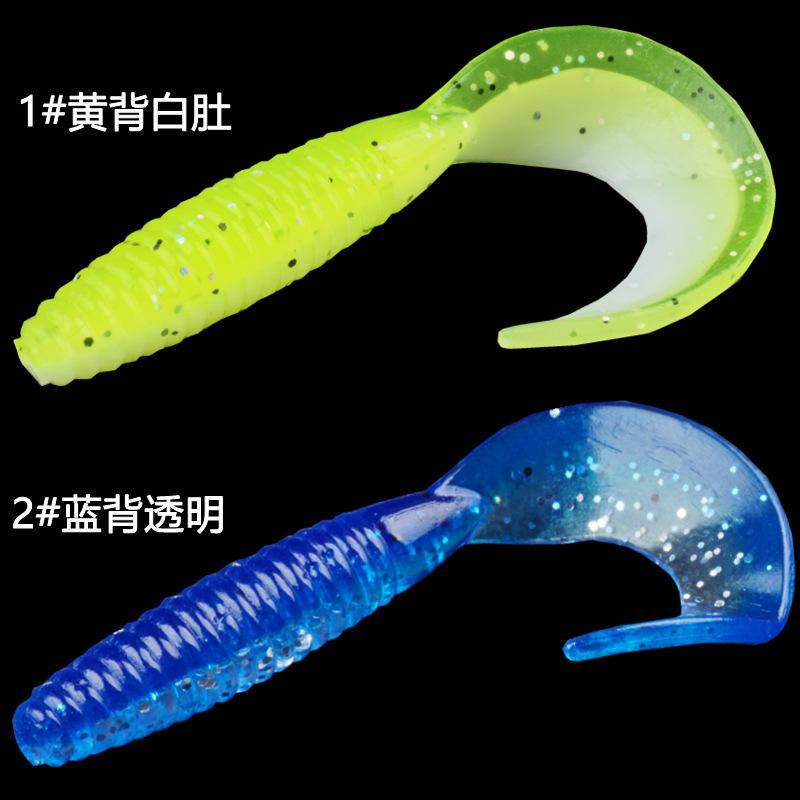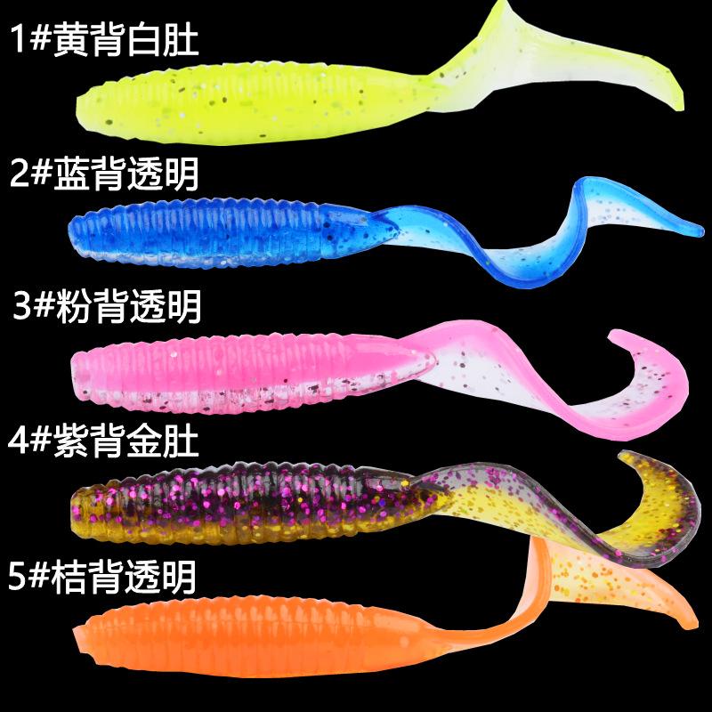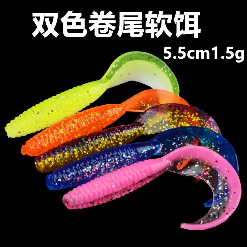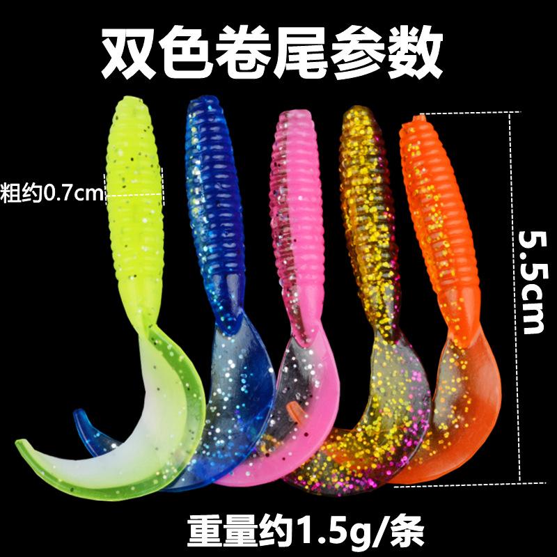 Señuelo Luya de dos colores con cola rizada, cebo blando para pez mandarín y lubina, cola sencilla roscada, cebo biónico 5.5cm, venta al por mayor transfronteriza, cebo falso, gusano blando