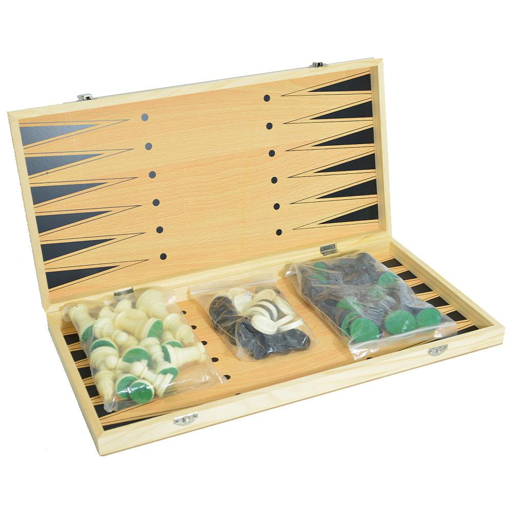 [Detalles del producto]: Un tablero de ajedrez, un juego de piezas de ajedrez (32 piezas); un juego de piezas de backgammon (30 piezas), 15 piezas blancas y negras; piezas de ajedrez y piezas de backgammon compartidas; un par de dados (2 piezas)