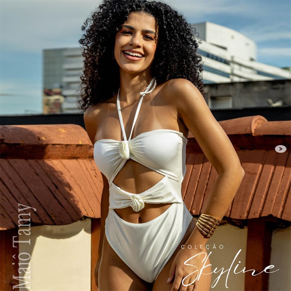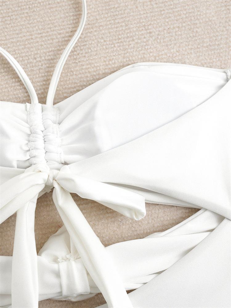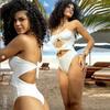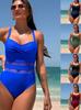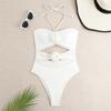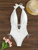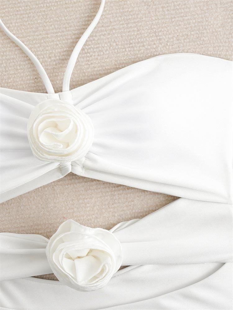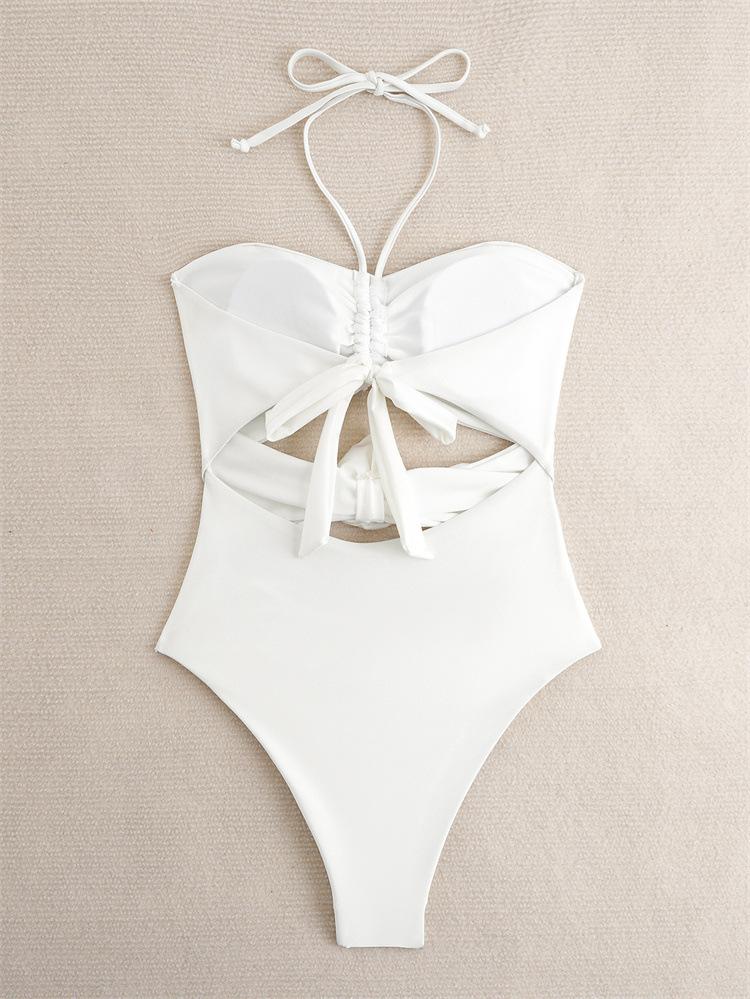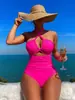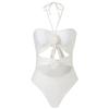 Transfronterizo 2025 Europeo y Americano nuevo estilo color sólido cuello halter flor Amazon bikini traje de baño de una pieza para mujer sexy