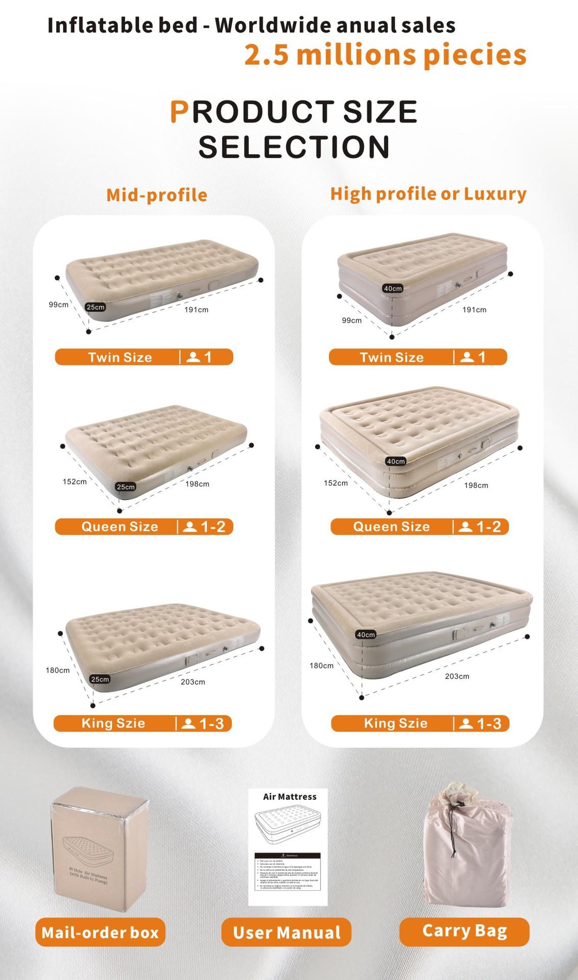 Single Low Inflatable Bed 190X100X25CM, Double Low Inflatable Bed 200X150X25CM, Three-person low inflatable be...