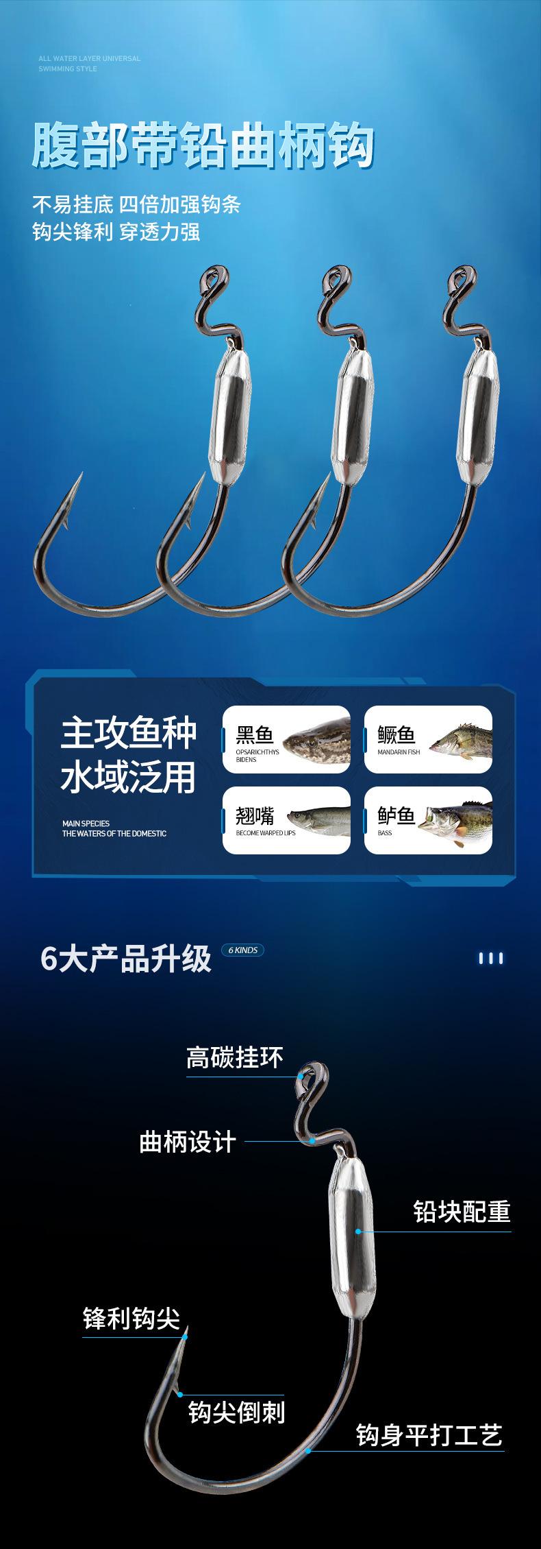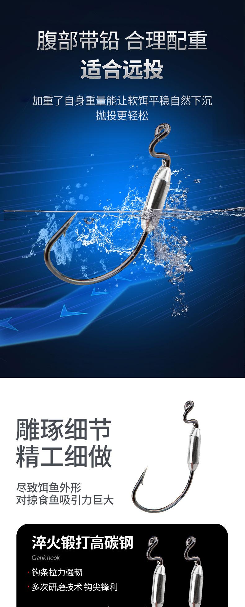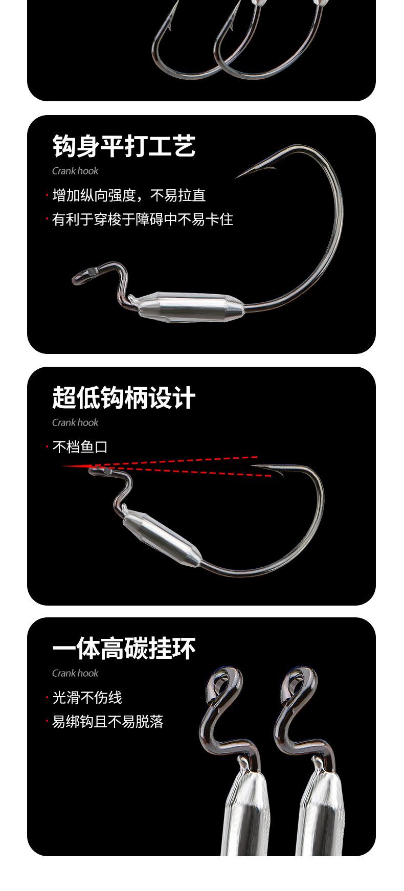 Set de anzuelos Crank 7316 sin plomo para pesca transfronteriza, anzuelo Crank de amplia abertura, señuelo, cebo blando, anzuelo para gusano blando, anzuelo de pesca a granel