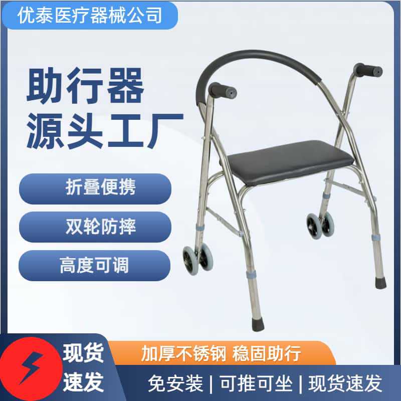 Andador para Ancianos con Ruedas y Asiento Andador Plegable Estable Sentable Descansable Asiste a la Caminata de Ancianos