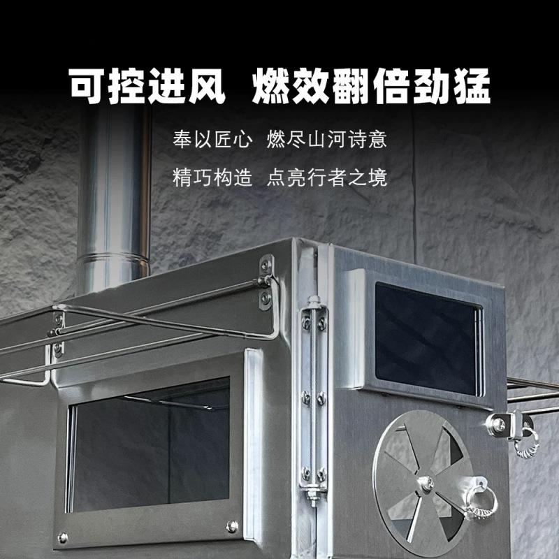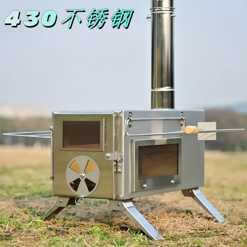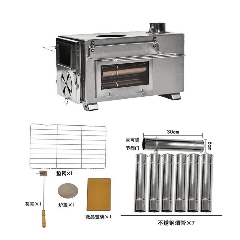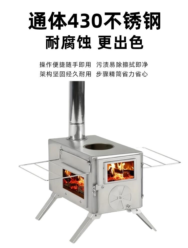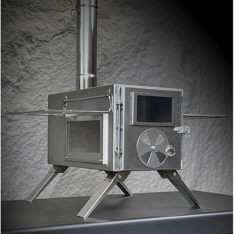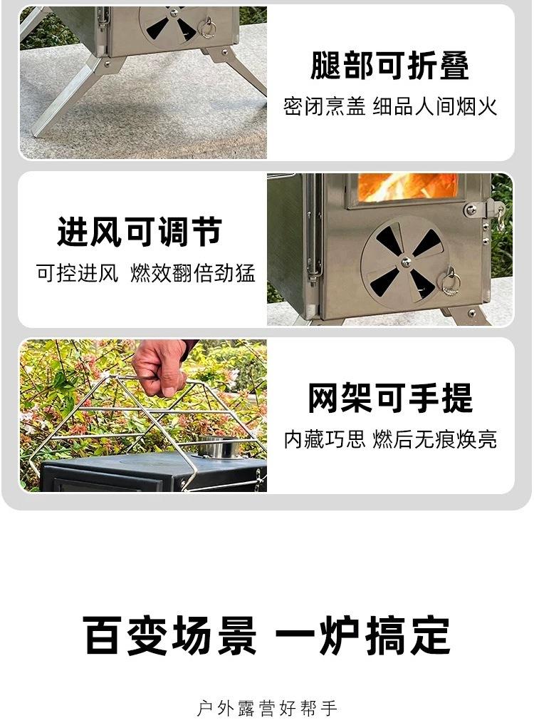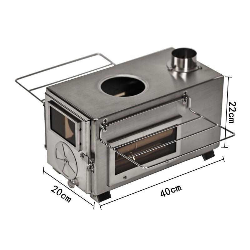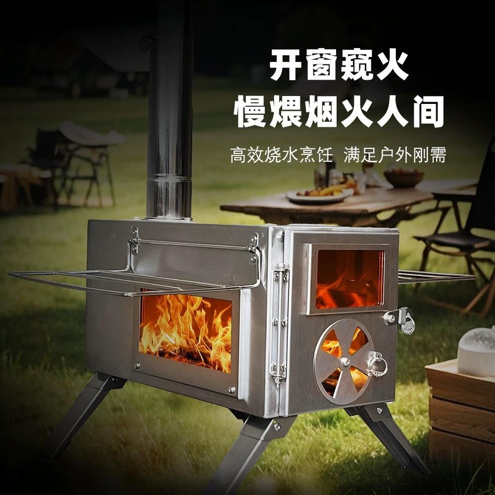 Estufa de leña de acero inoxidable 430 personalizada de tres lados para ver el fuego, portátil, plegable, multifuncional para tienda de campaña, calefacción, cocina, barbacoa