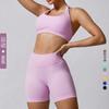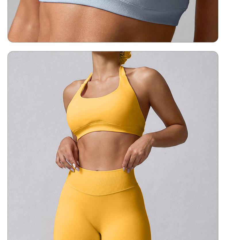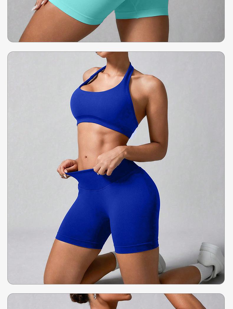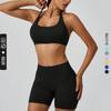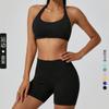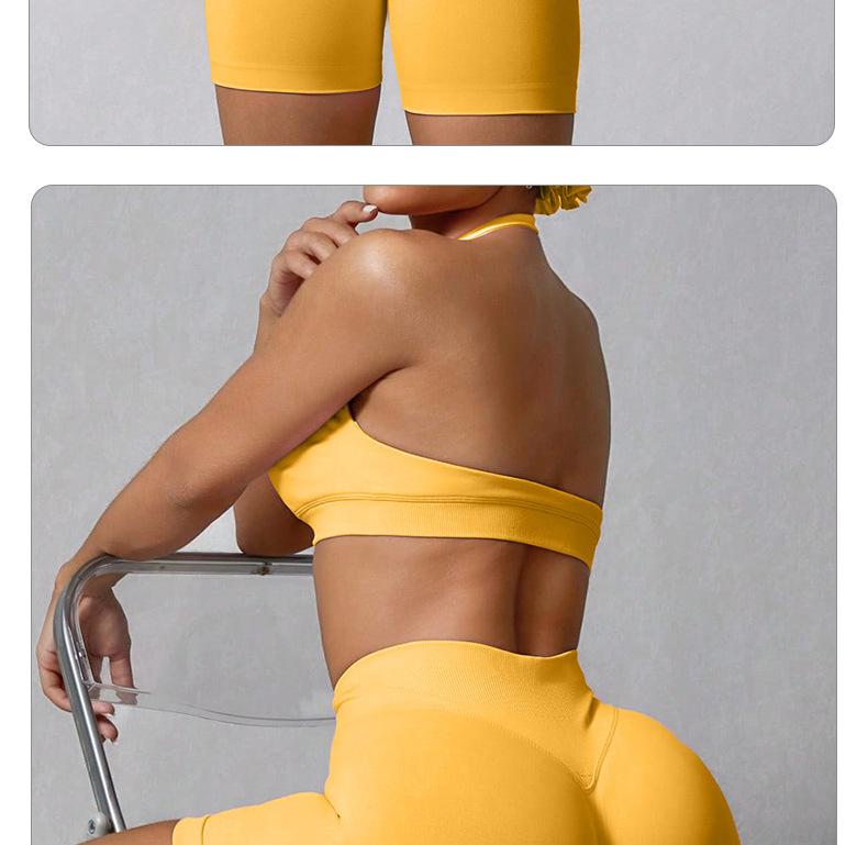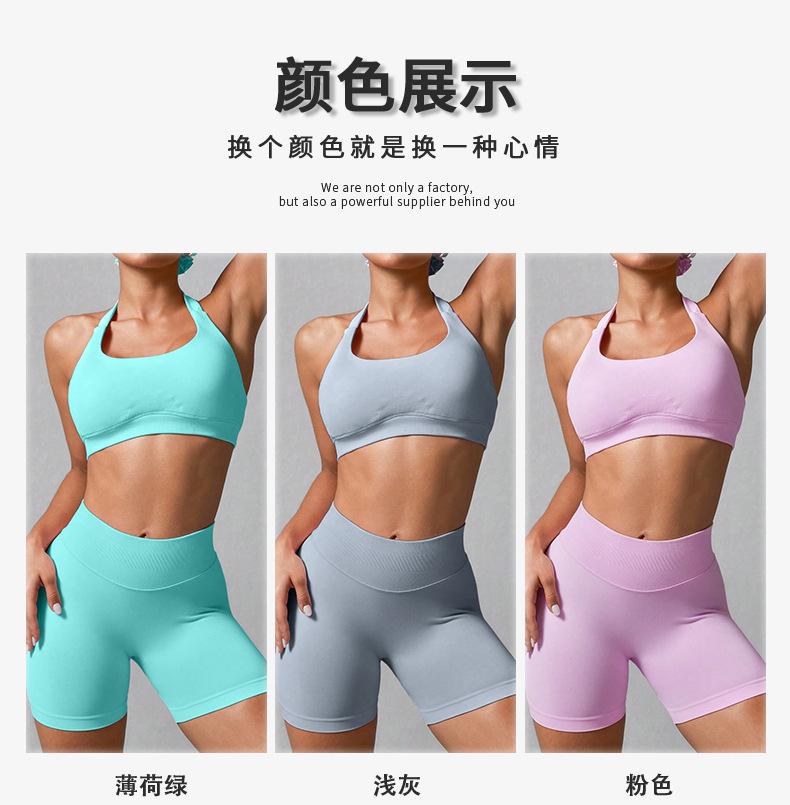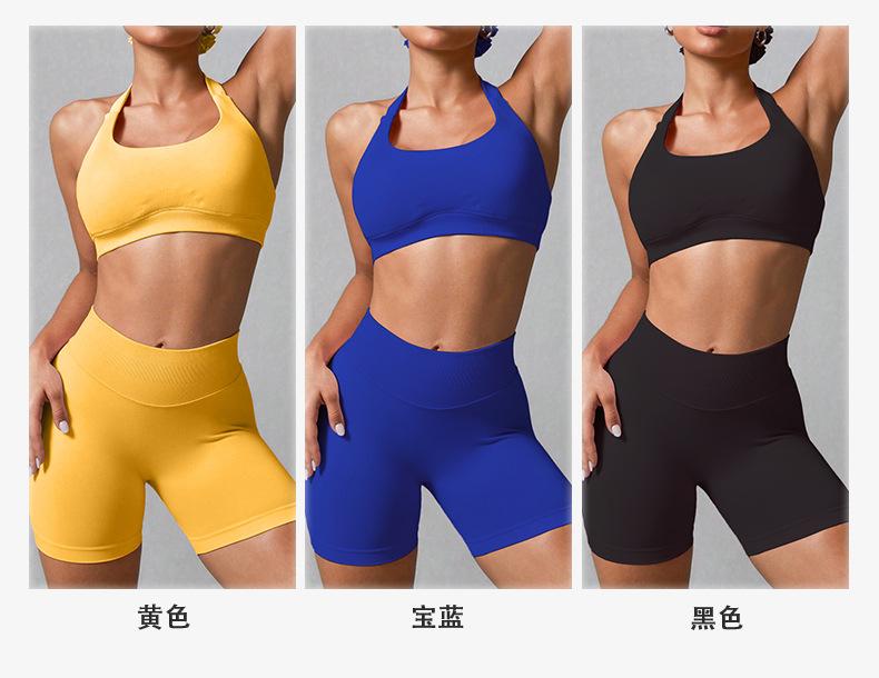 Conjunto Europeo y Americano sin Costuras para Yoga, Espalda Descubierta, Cuello Halter Deportivo para Fitness, Espalda Hermosa, Moldeador de Cuerpo, Anti-Exposición, Levanta Caderas, Sujetador y Shorts