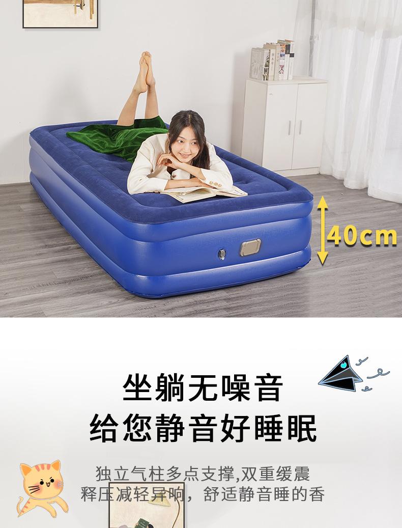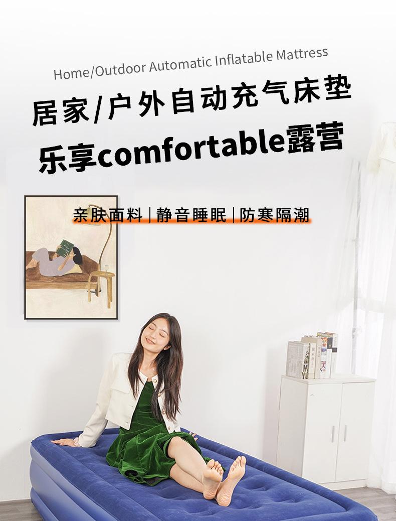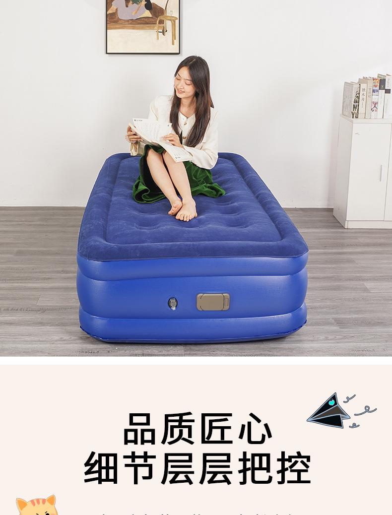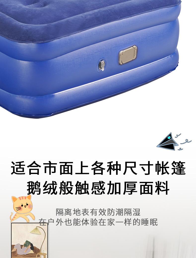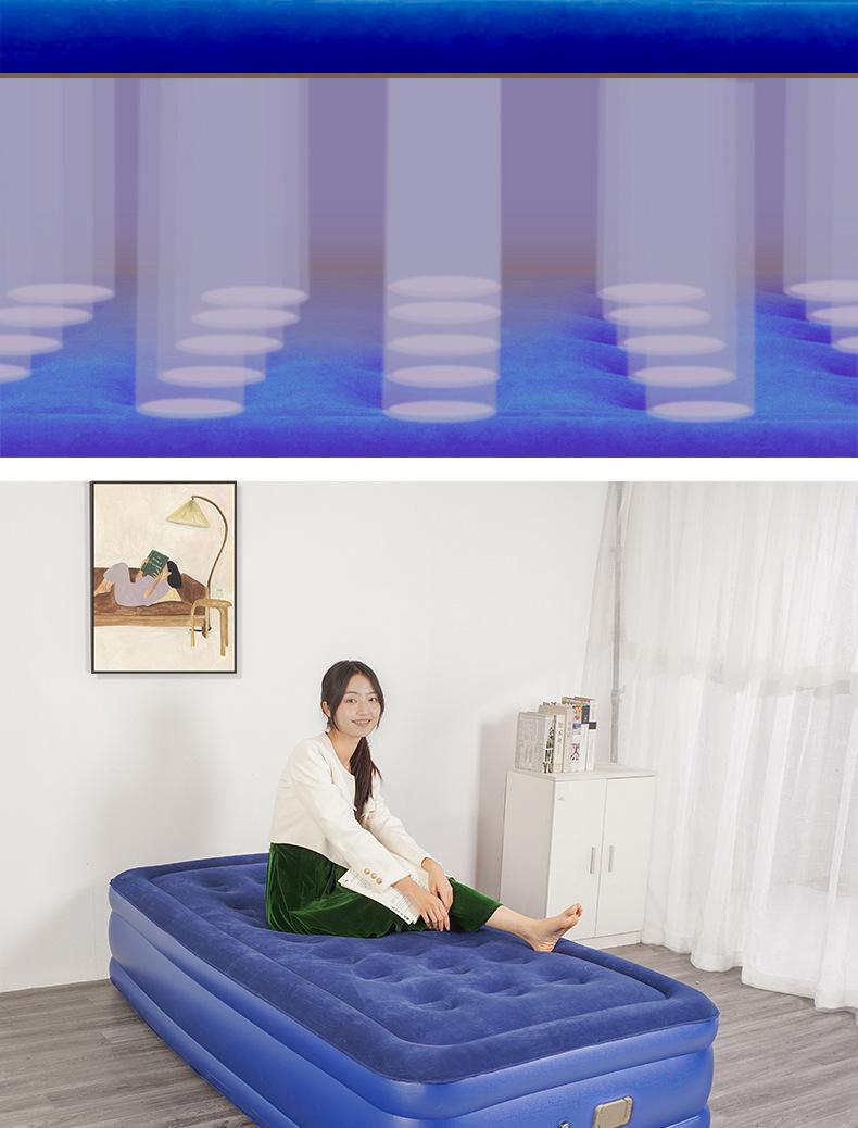 Colchón Inflable de Lujo Automático Doble Grosor Cama de Aire Tienda de Campaña Cama de Piso Azul PVC Flocado