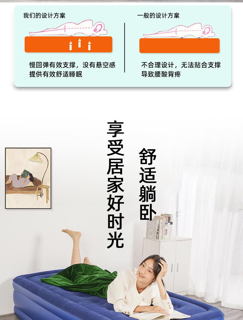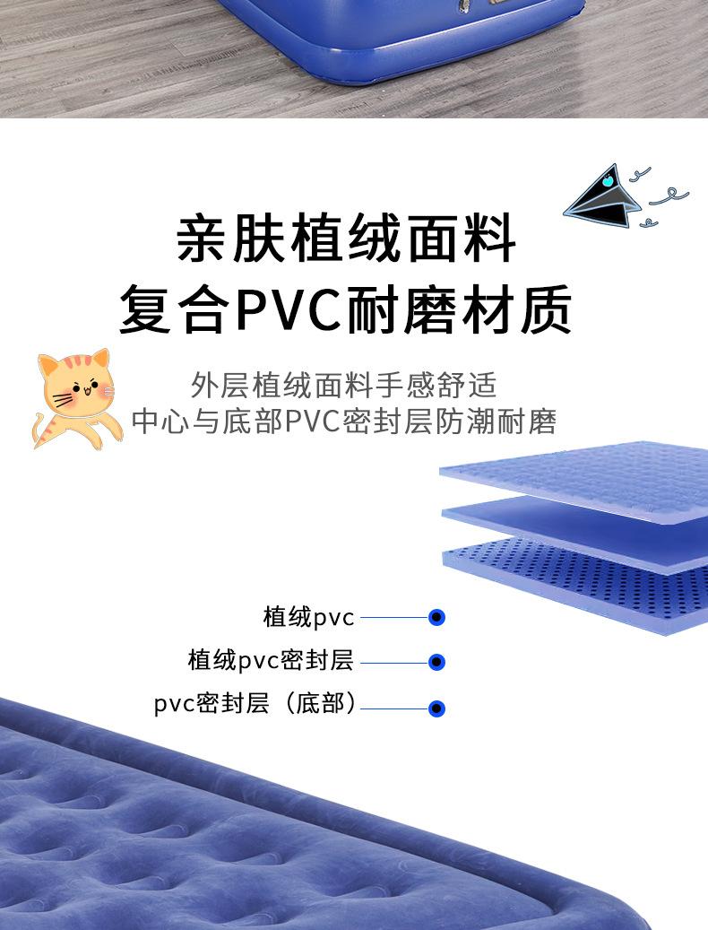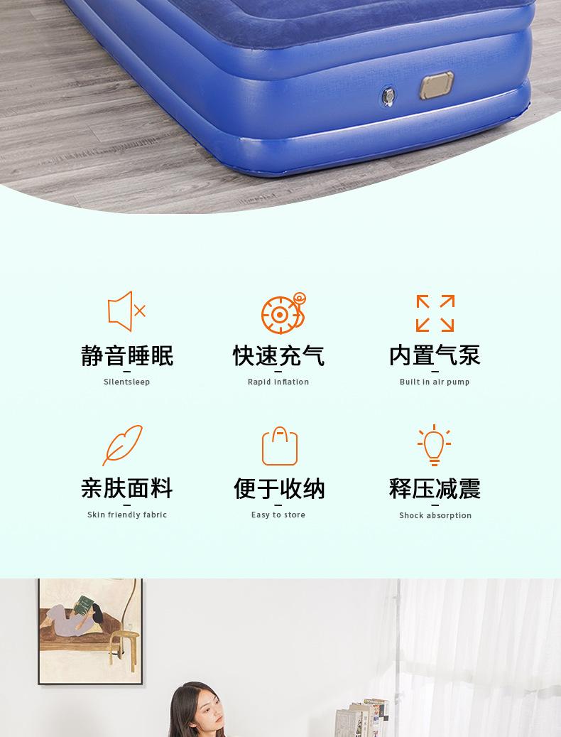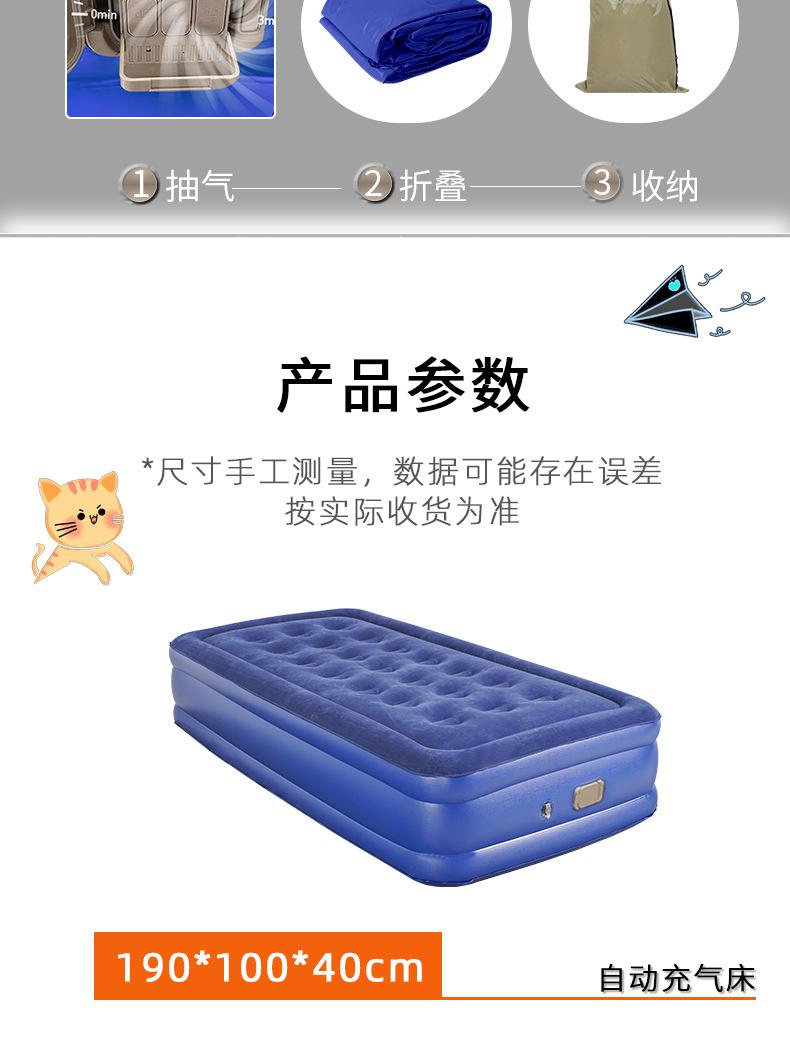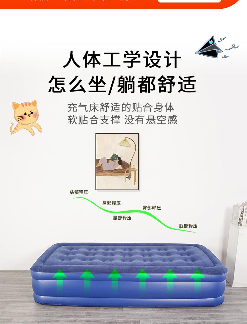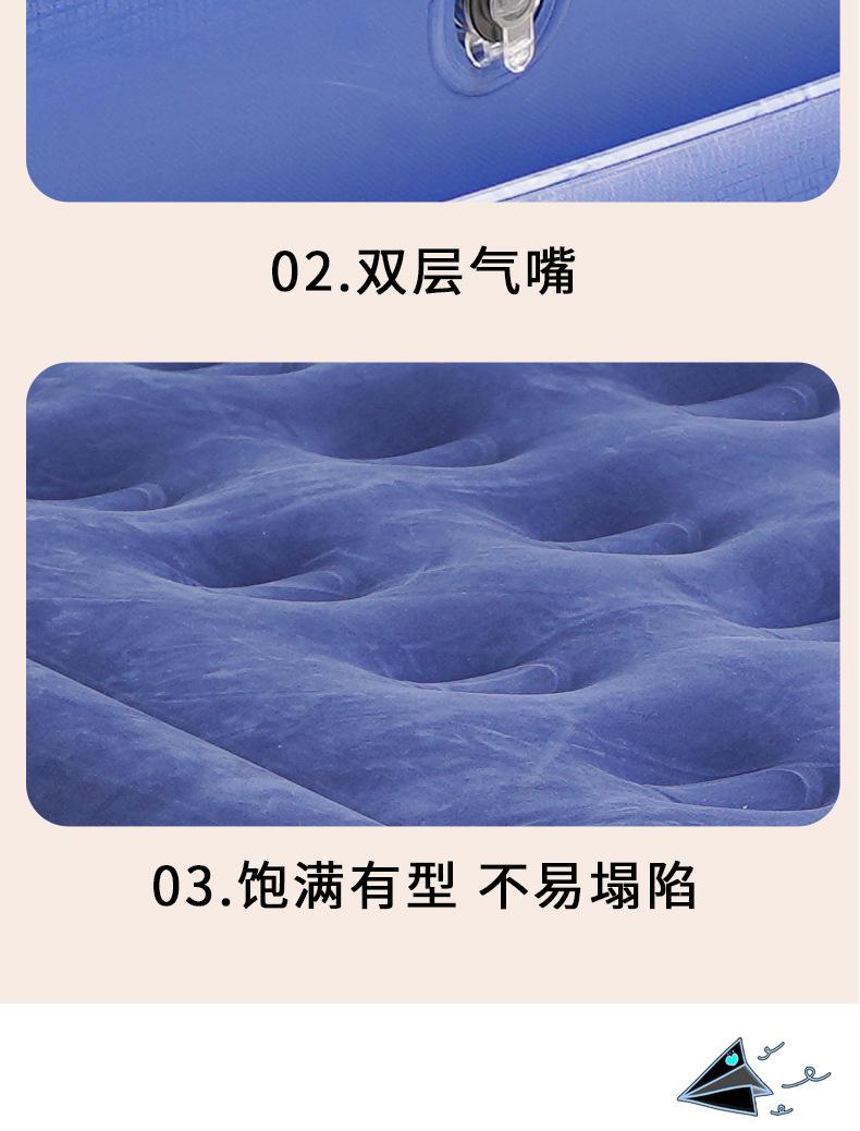 Colchón Inflable de Lujo Automático Doble Grosor Cama de Aire Tienda de Campaña Cama de Piso Azul PVC Flocado