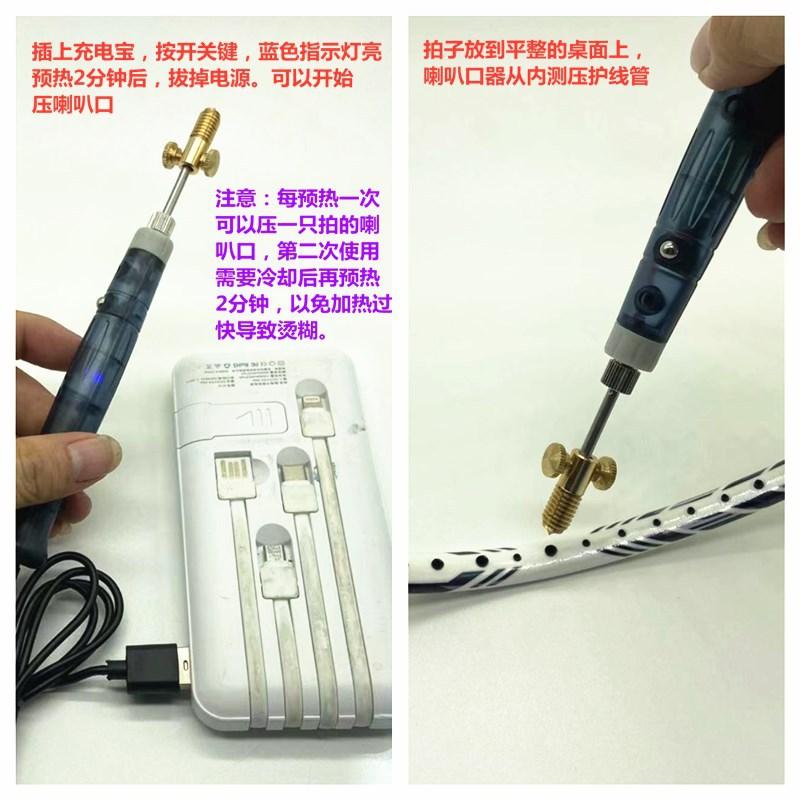 Raqueta de bádminton tubo protector de partículas de goma borde de presión clavo herramienta de abrazadera boca de campana fuente de alimentación de carga USB tesoro de energía portátil 5V