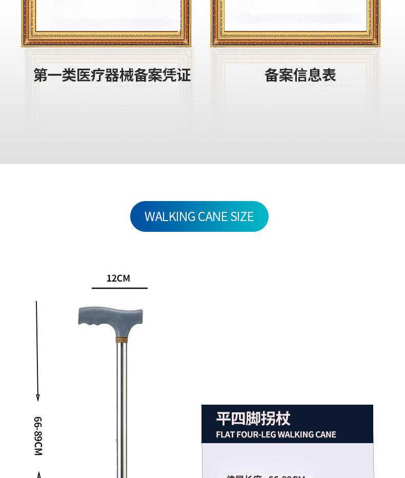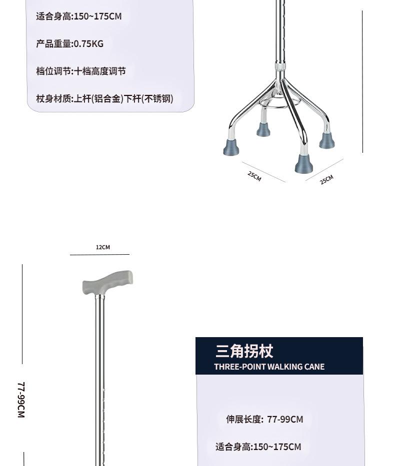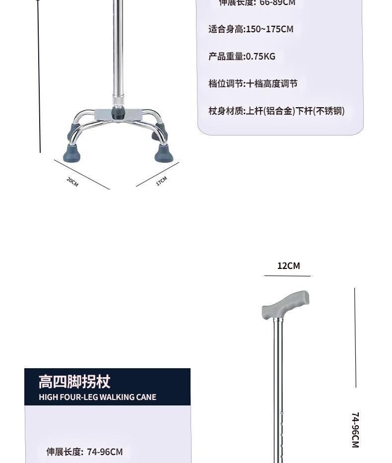 Muleta de aleación de aluminio de cuatro patas, ligera, antideslizante, para personas mayores con pasamanos, multifuncional, estable, muleta para asistencia al caminar