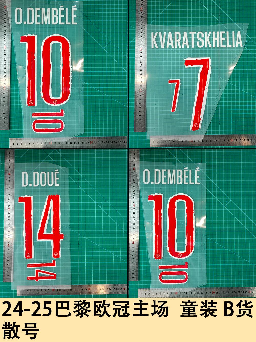 24-25 Paris Champions League Jersey Local Infantil Versión B Número de Jersey Letra Transferencia de Calor Número Calcomanía de Transferencia de Calor Jersey Balón