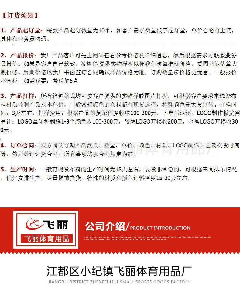 La Fábrica de Artículos Deportivos Feili del Distrito de Jiangdu es una empresa especializada en la producción y el procesamiento de equipo de protección deportiva y otros productos, con un sistema de gestión de calidad completo y científico. La Fábrica de Artículos Deportivos Feili del Distrito de Jiangdu es un fabricante especializado en la producción de equipo de protección deportiva, registrado y aprobado por los departamentos industriales y comerciales nacionales. Productos principales: muñequeras, coderas, palmares, fajas lumbares, hombreras, musleras, rodilleras, pantorrilleras, tobilleras, soportes corporales de la serie carbón de bambú, soportes corporales de la serie turmalina.