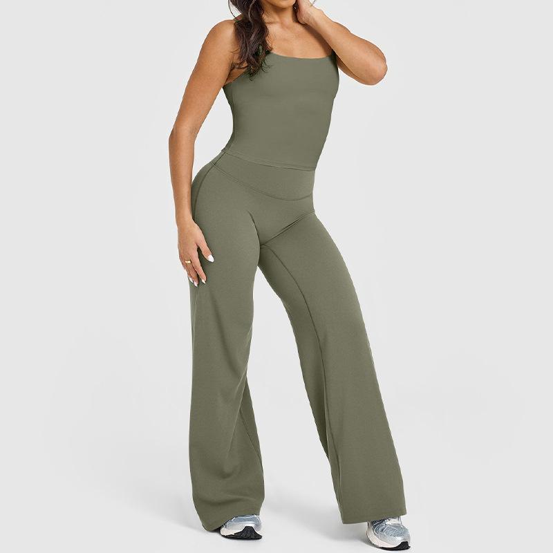 Traje de Ropa de Yoga Casual Nude Europea y Americana Top de Tubo Ajustado Chaleco Pantalones Rectos Ropa de Fitness Traje Deportivo Ropa de Mujer