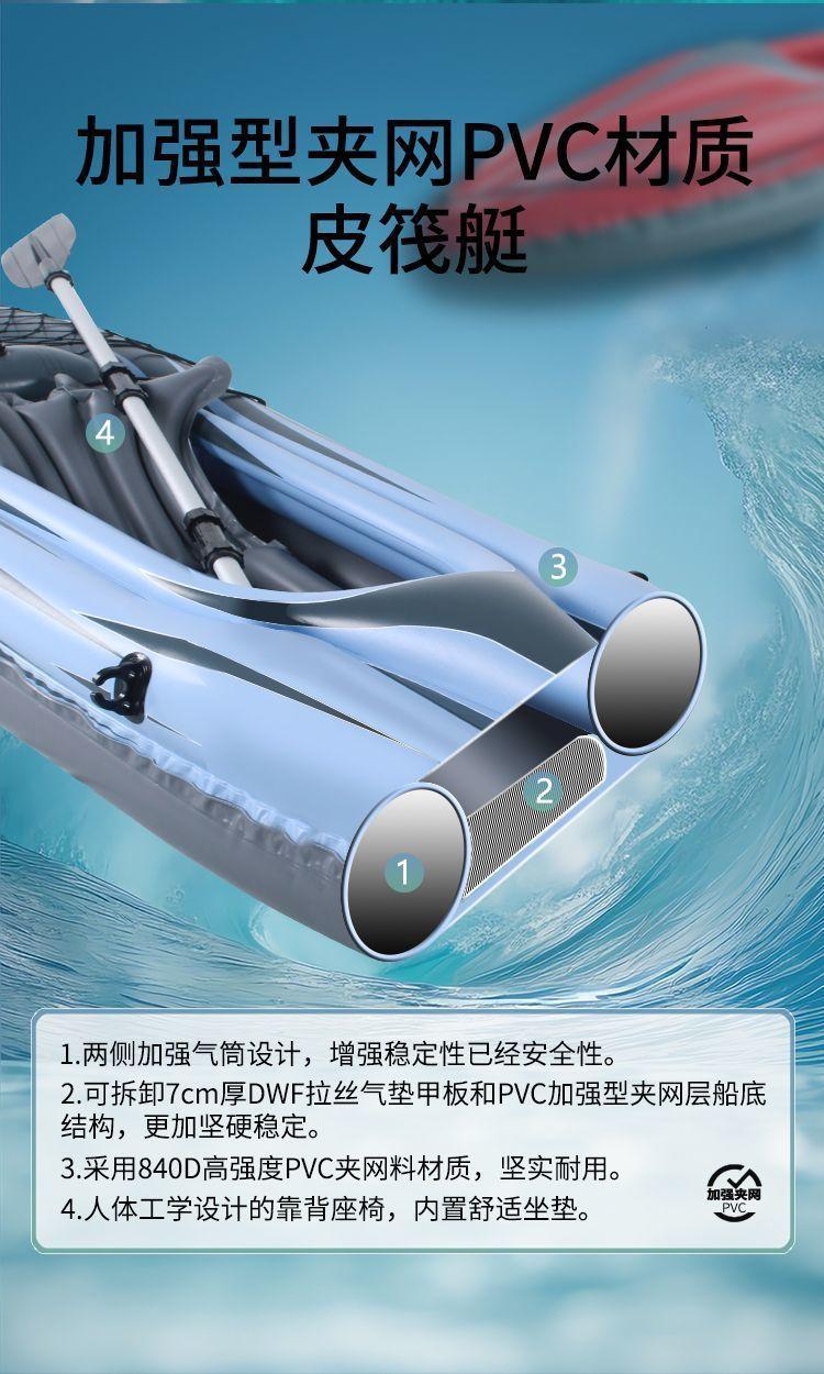 Kayak Inflable Multiusos para Exteriores Bote Inflable para 2 Personas Bote de Asalto Fondo Engrosado Resistente al Desgaste Bote de Pesca Kayak Portátil de PVC