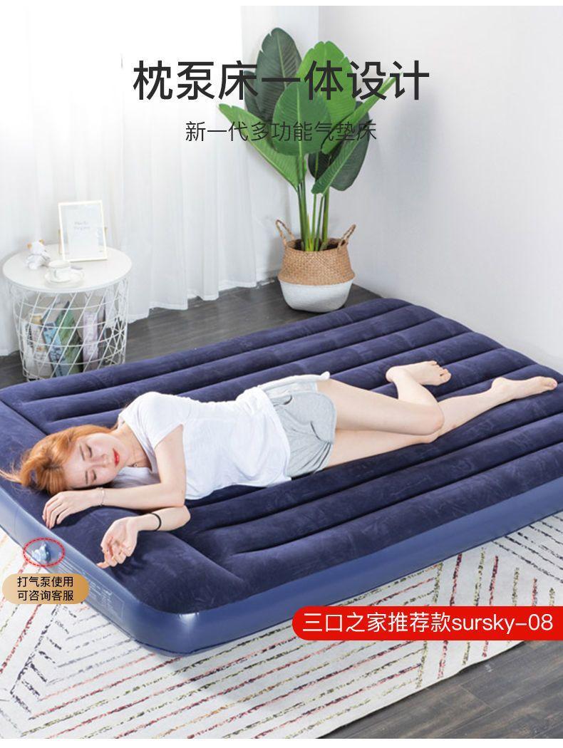 Blue built-in pillow + foot pump storage bag + repair kit, Blue built-in pillow + hand-pull pump storage bag +...
