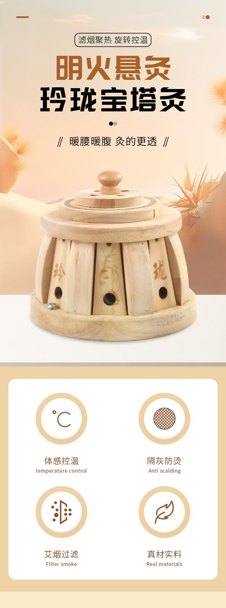 Exquisita Pagoda Moxibustión Hogar Caliente Moxibustión Artemisa en Barra Madera Sólida Portátil Control de Temperatura Portátil Multifuncional Aislamiento Térmico Venta al por Mayor Caja de Moxibustión