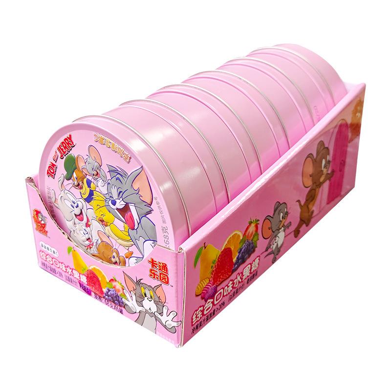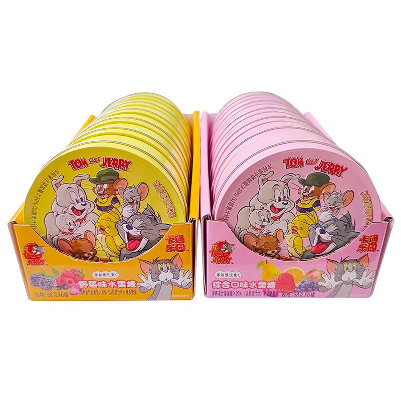 Caramelo de Fruta con Sabor a Frutos Silvestres de Arroz Dorado Colorido Caramelo Frutal Caja de Lata Caramelo Duro Snack para Niños Modelo Co-Branded de Tom y Jerry