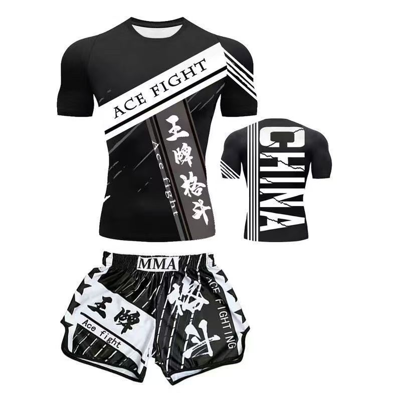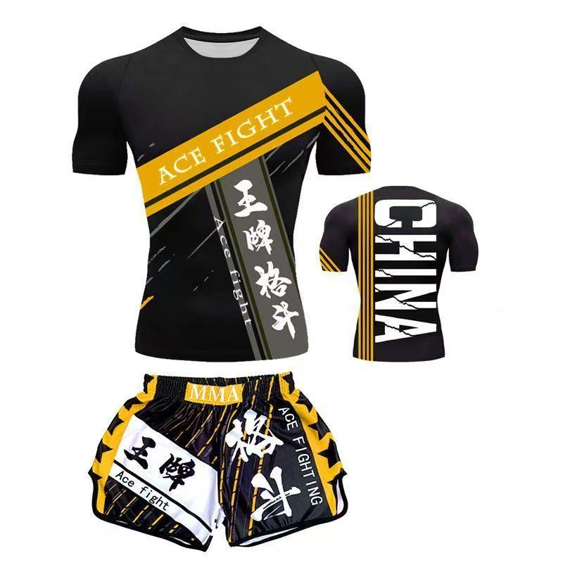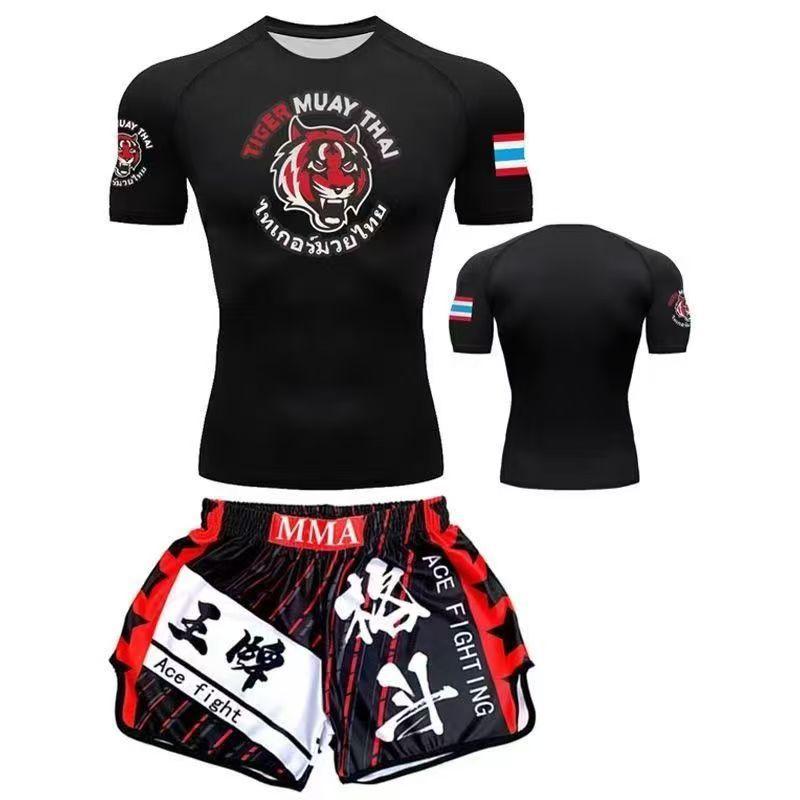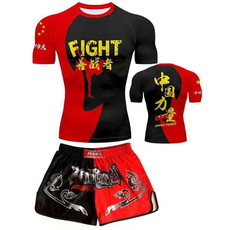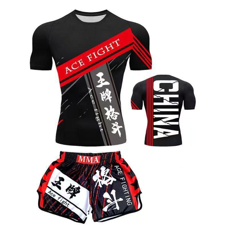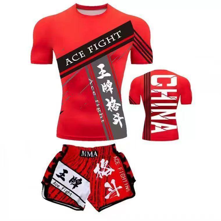 Traje de Entrenamiento de Artes Marciales Set Ufc para Hombres y Mujeres, Ropa de Compresión para Boxeo de Secado Rápido, Pantalones Cortos de Manga Corta para Lucha Muay Thai, Equipo de Gimnasio