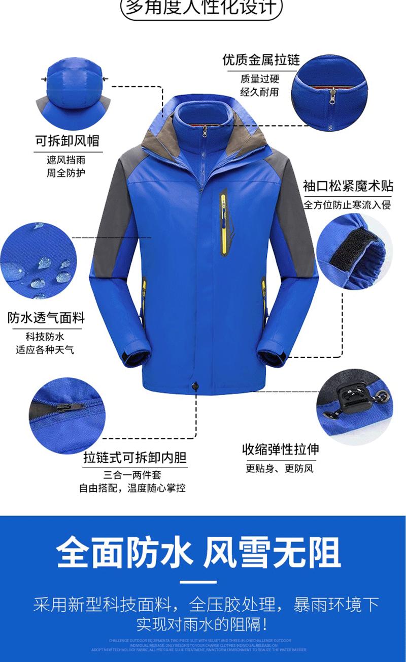 Chaqueta tres en uno logo estampado desmontable para exteriores montañismo viaje construcción de grupo forro polar ropa de trabajo bordado mayoreo