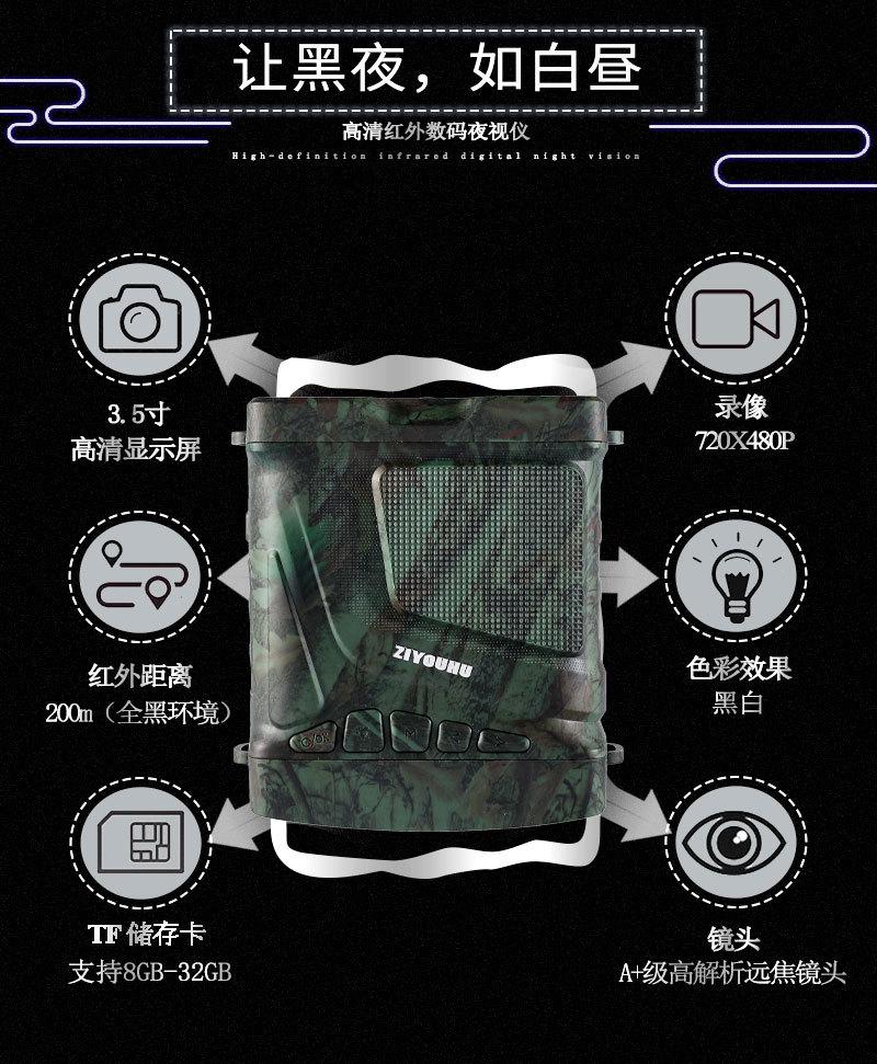 Ziyouhu Binocular Digital de Visión Nocturna de Pantalla Grande Telescopio de Visión Nocturna Infrarrojo Foto y Video de Alta Definición Día y Noche