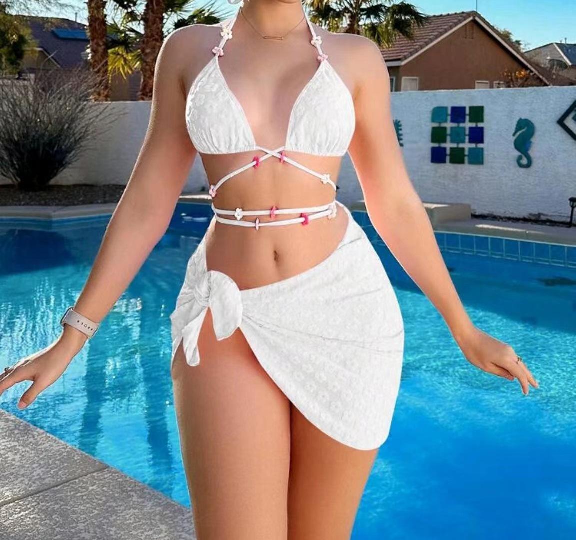 Compra Traje de baño nuevo europeo y americano 2024 Traje de baño dividido Bikini de comercio exterior transfronterizo Sexy conjunto de tres piezas Bikini para mujer al por mayor en Joom.pro