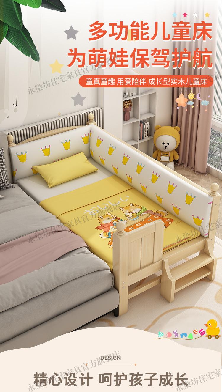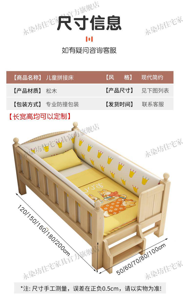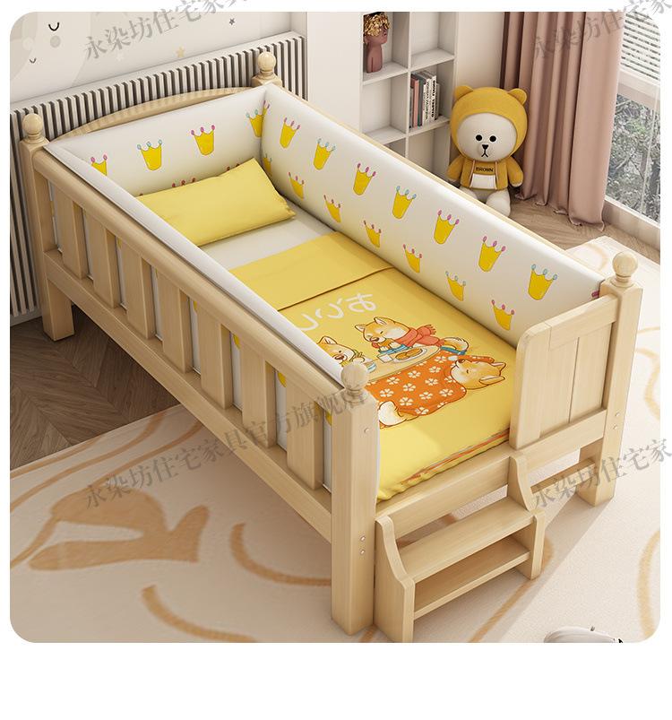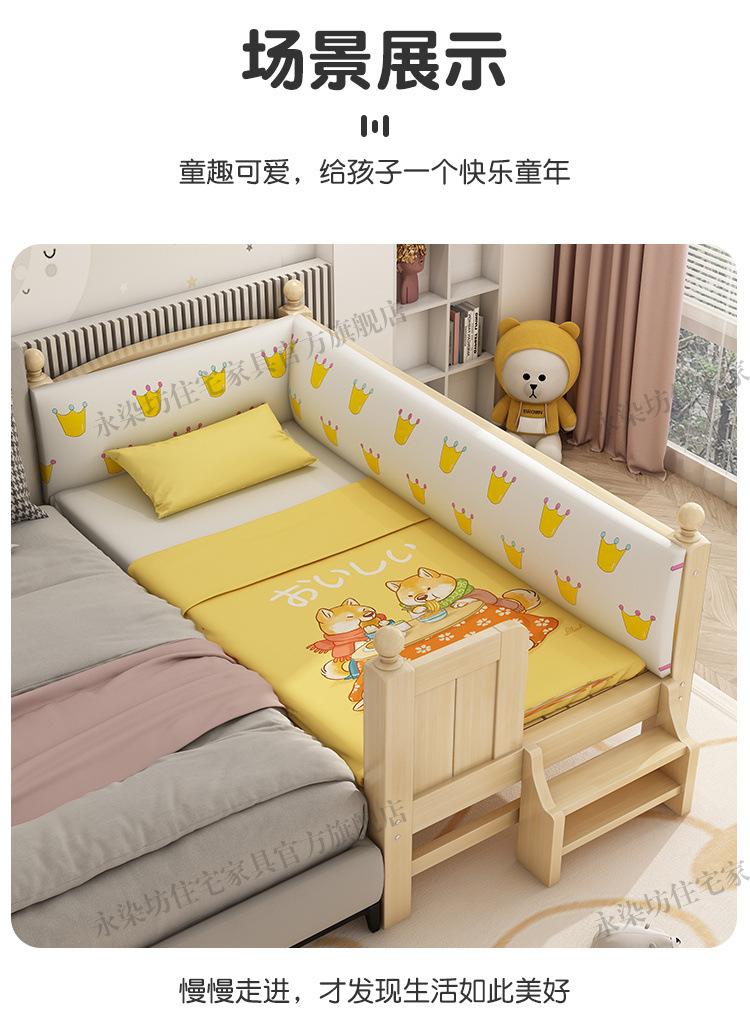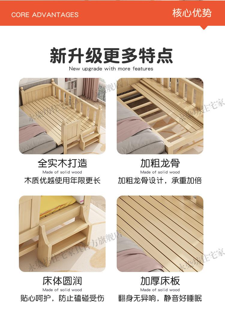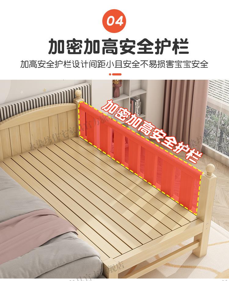 Cama de Empalme para Bebé de Madera Maciza con Barandales Anchos para Niños y Niñas Cama Individual de Noche Cama Grande de Empalme para Niños Disponible para Intercambio