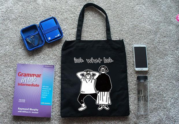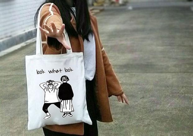 What are you looking at white bag, What are you looking at black bag, What are you looking at pink bag, What a...