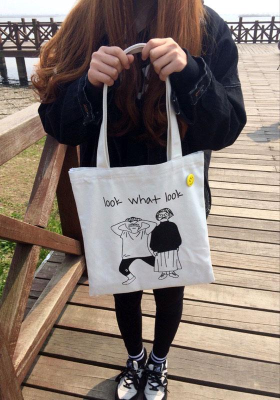 Bolso de Mano Minimalista Coreano con Letras Literario Fresco Bolso de Hombro Bolso de Lona para Mujer Bolsa de Viaje para Compras Mochila para Estudiantes Trendy