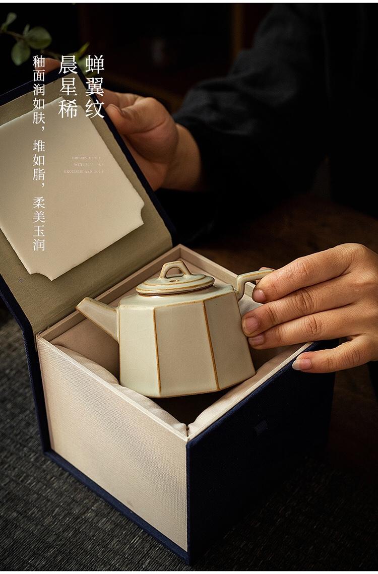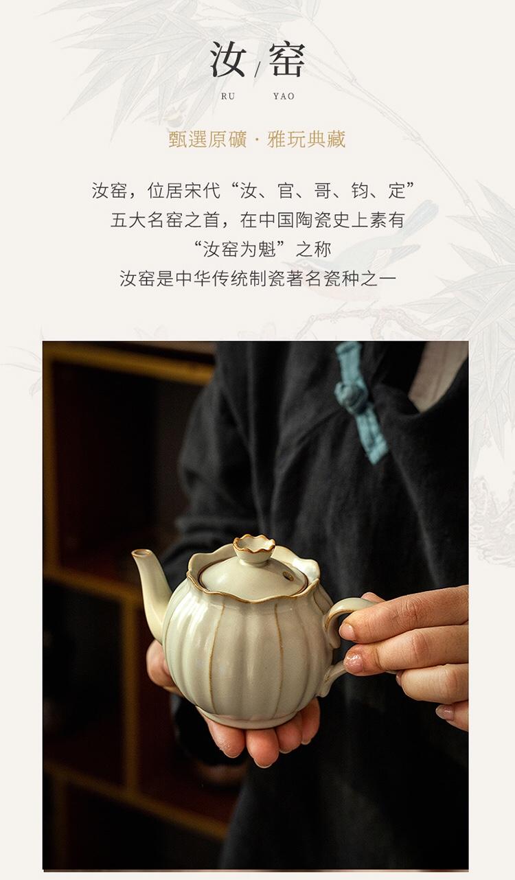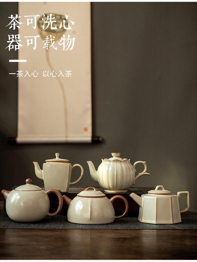 Tetera de Porcelana Horno Ru Juego de Té Kung Fu Tetera Individual para Uso Doméstico Tetera Grande de Porcelana Ru con Craquelado Adecuada para Infusionar Té Tetera Xishi