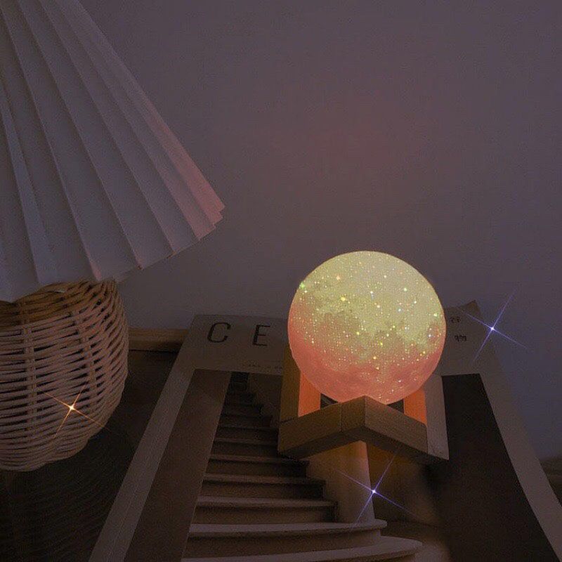 Lámpara de Luna Impresa en 3D Luz Nocturna Atmósfera Dormir Cielo Estrellado Lámpara de Planeta Dormitorio Mesita de Noche Romántica Lámpara de Mesa Regalo de Cumpleaños