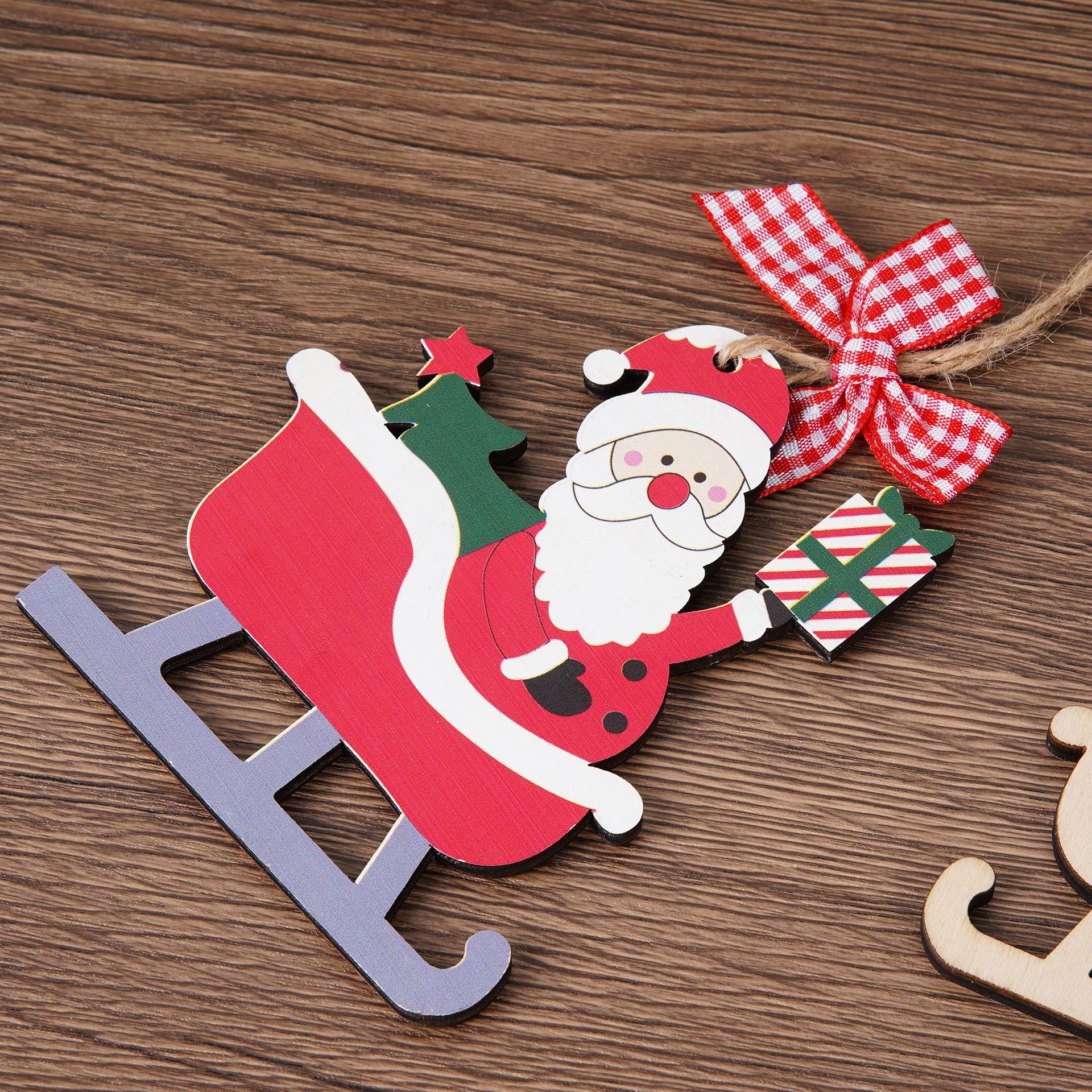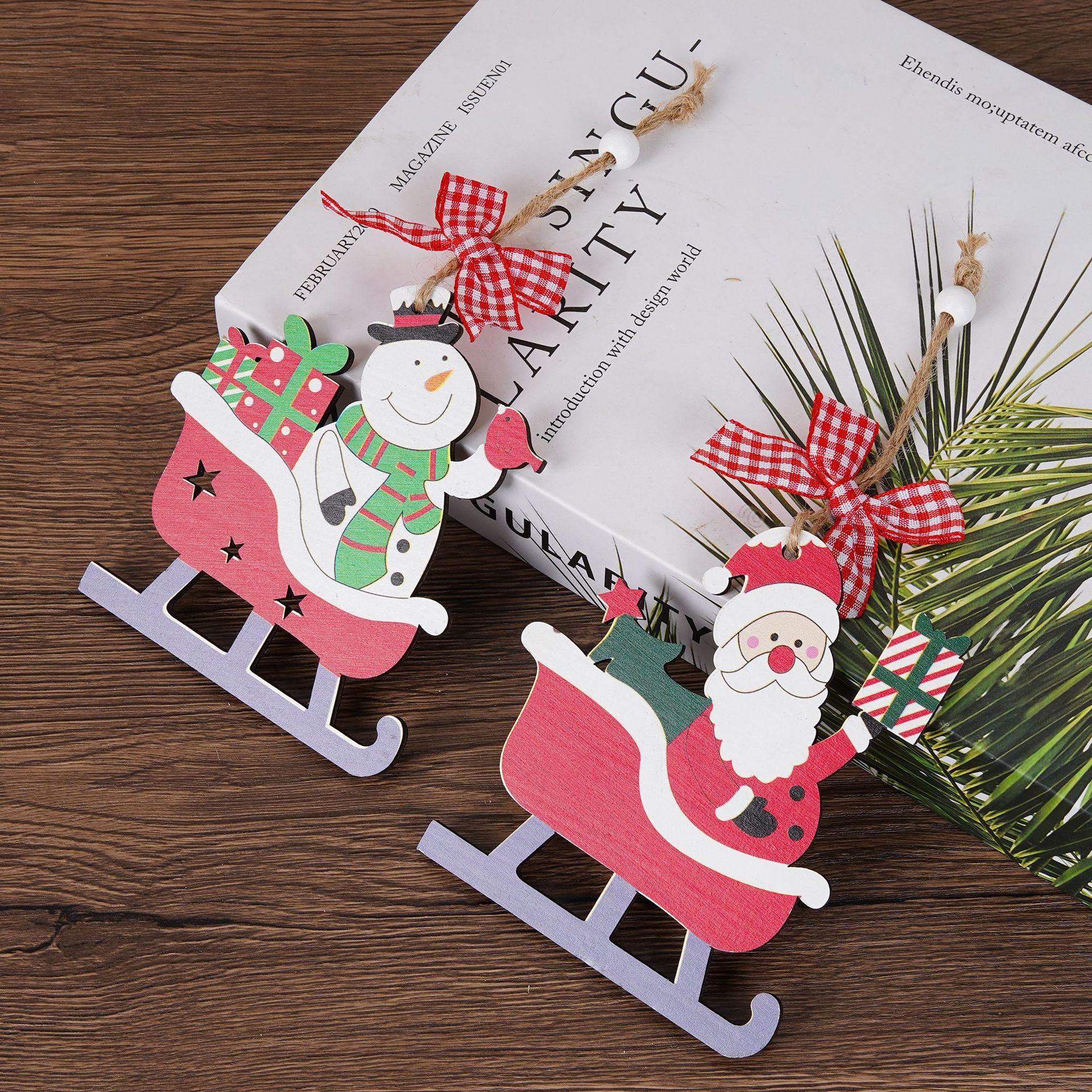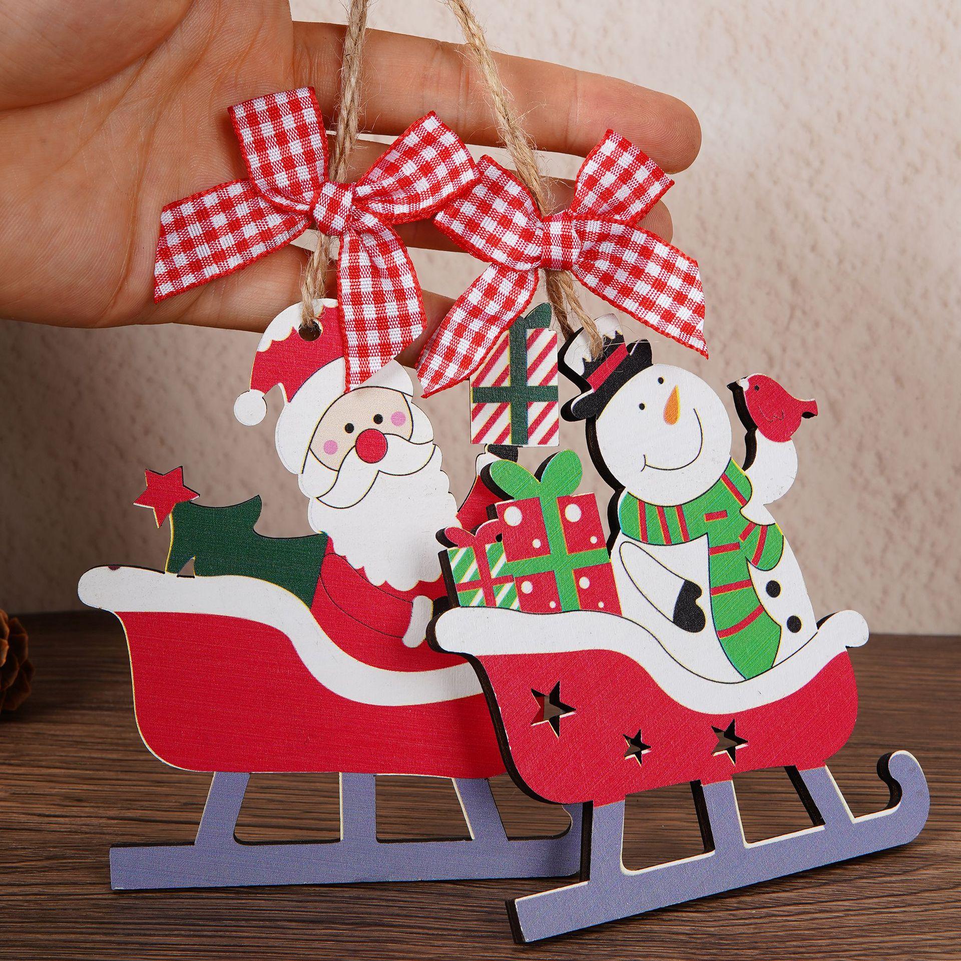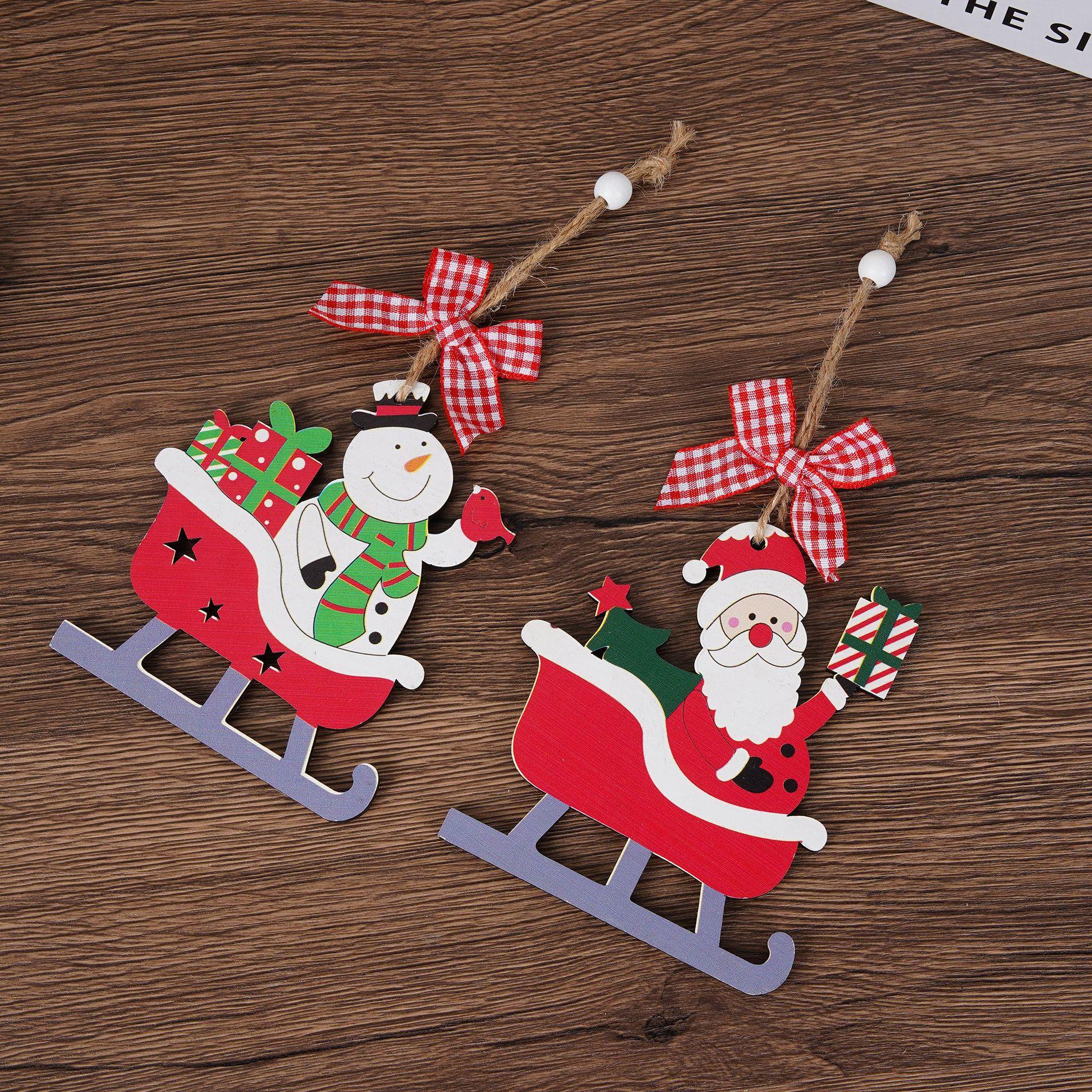 Adornos Navideños Transfronterizos Nuevos Decoración de Trineo de Santa Adornos para Árbol de Navidad Bicicleta de Reno Colgante de Madera